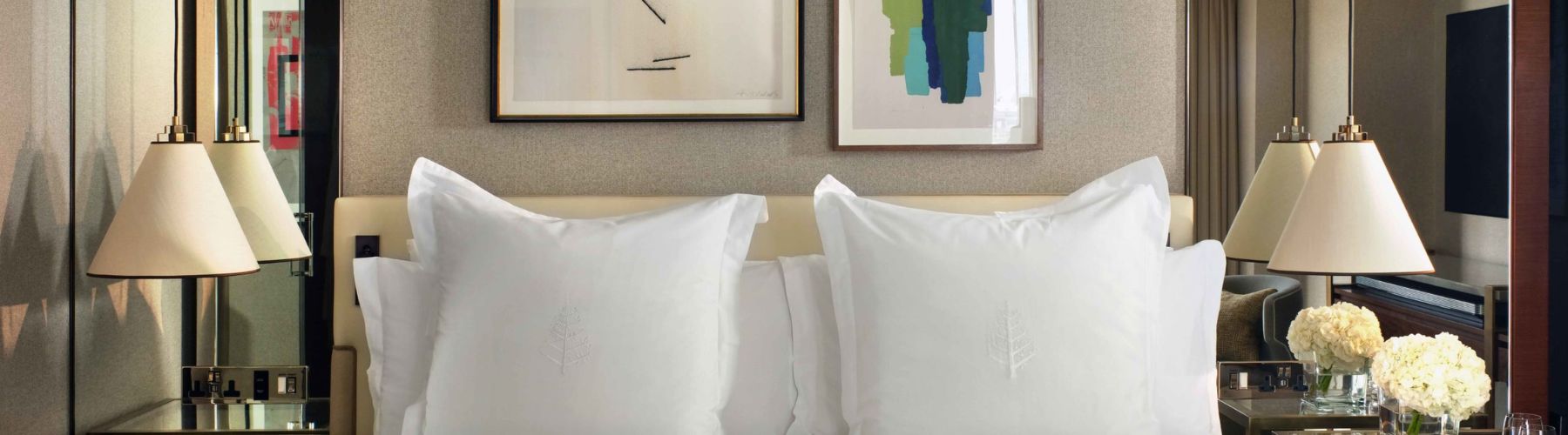 Brass and glass bedside pendants in the Premier rooms, Four Seasons Park Lane.