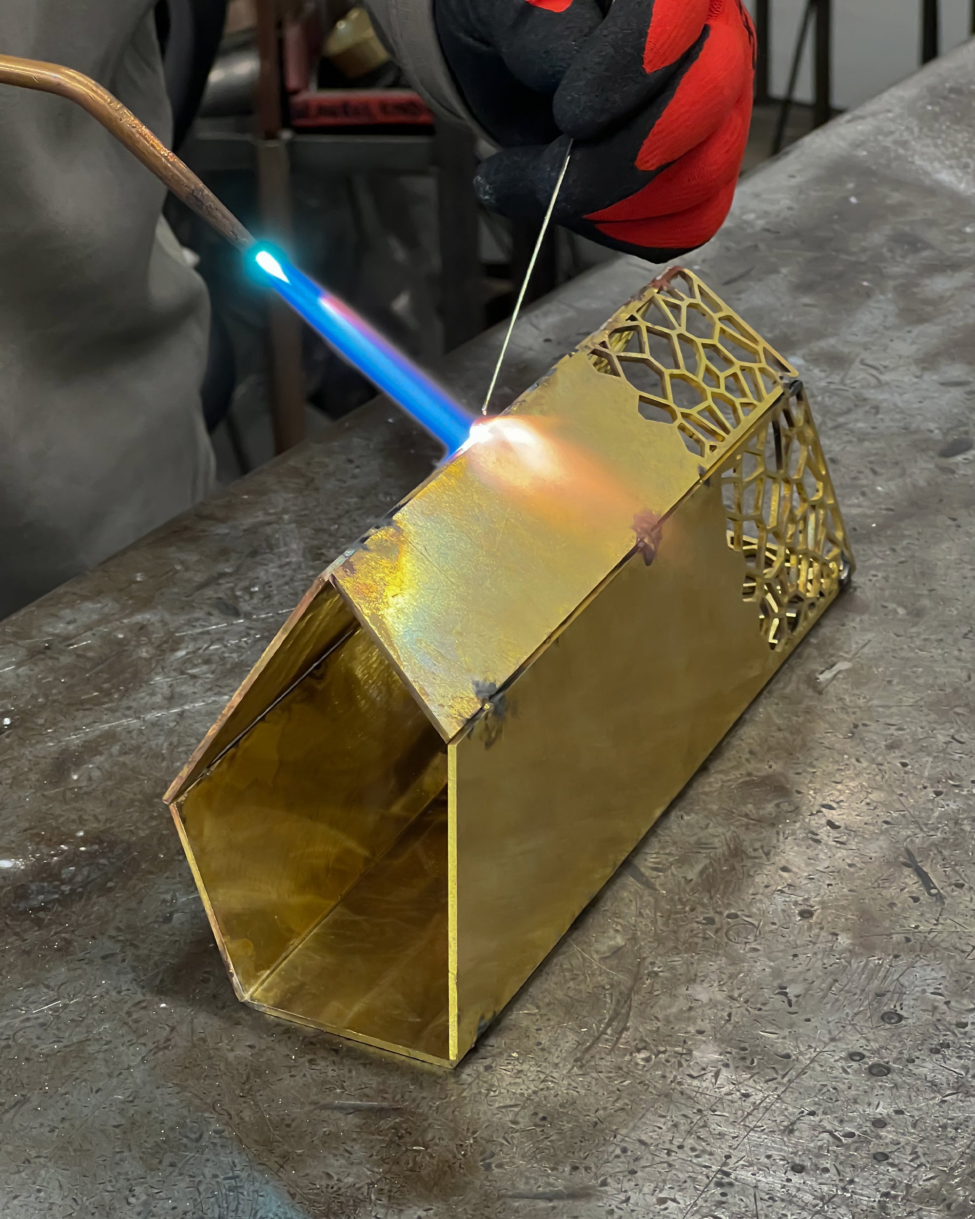 Intricate patterns are cut into the brass using our advanced laser, then seamlessly soldered.