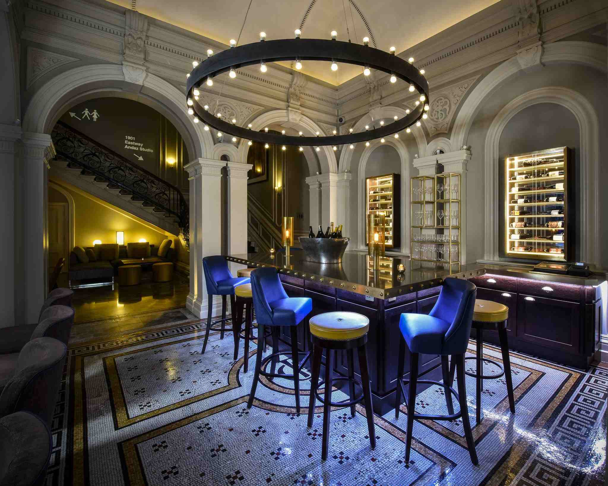 Set in a Grade Two listed room, the 1901 Restaurant and Wine Lounge is discretely attached to the Andaz Hotel on Liverpool Street. Although the interior is far from discrete, high vaulted ceilings, elegant patterns, massive archways and an array of bespoke lighting greet visitors immediately upon entering.