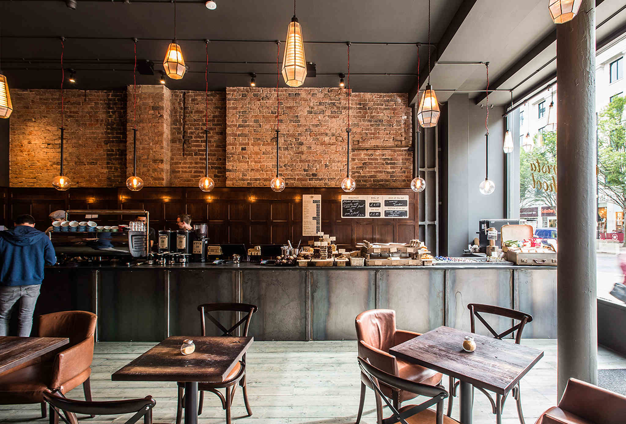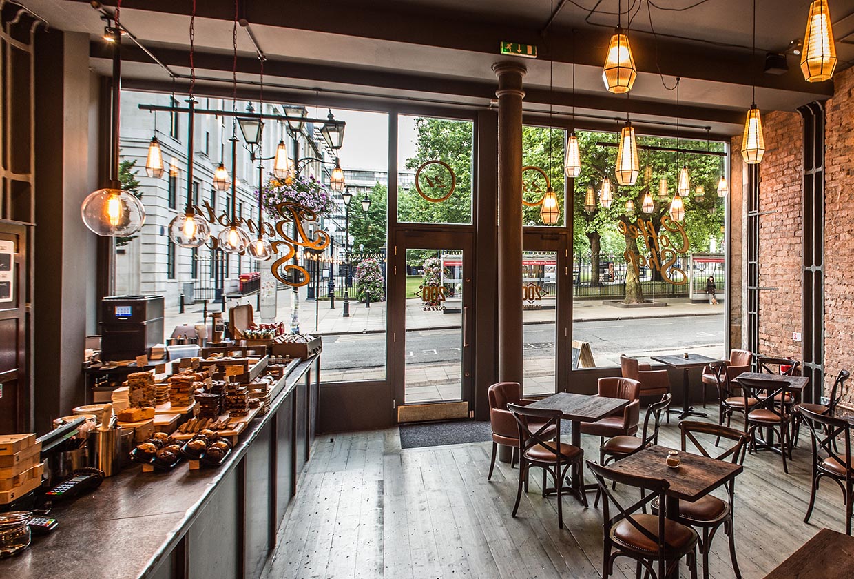 Blending bespoke lighting with striking Victorian features such as high ceilings and beautiful wooden panelling, the interior design team has created a comfortable and welcoming place with a sense of history. As a UK lighting manufacturer, Northern Lights was tasked with supplying a combination of glass custom pendants and bespoke industrial lighting, imbuing the warm yet evocative ambience of an artisan coffee shop.