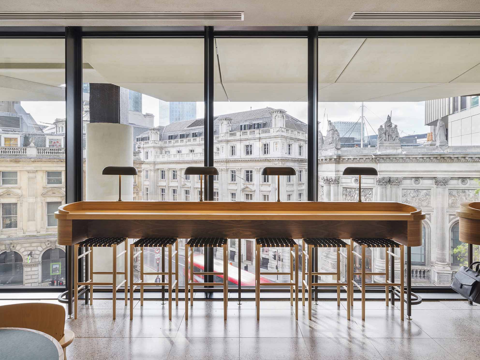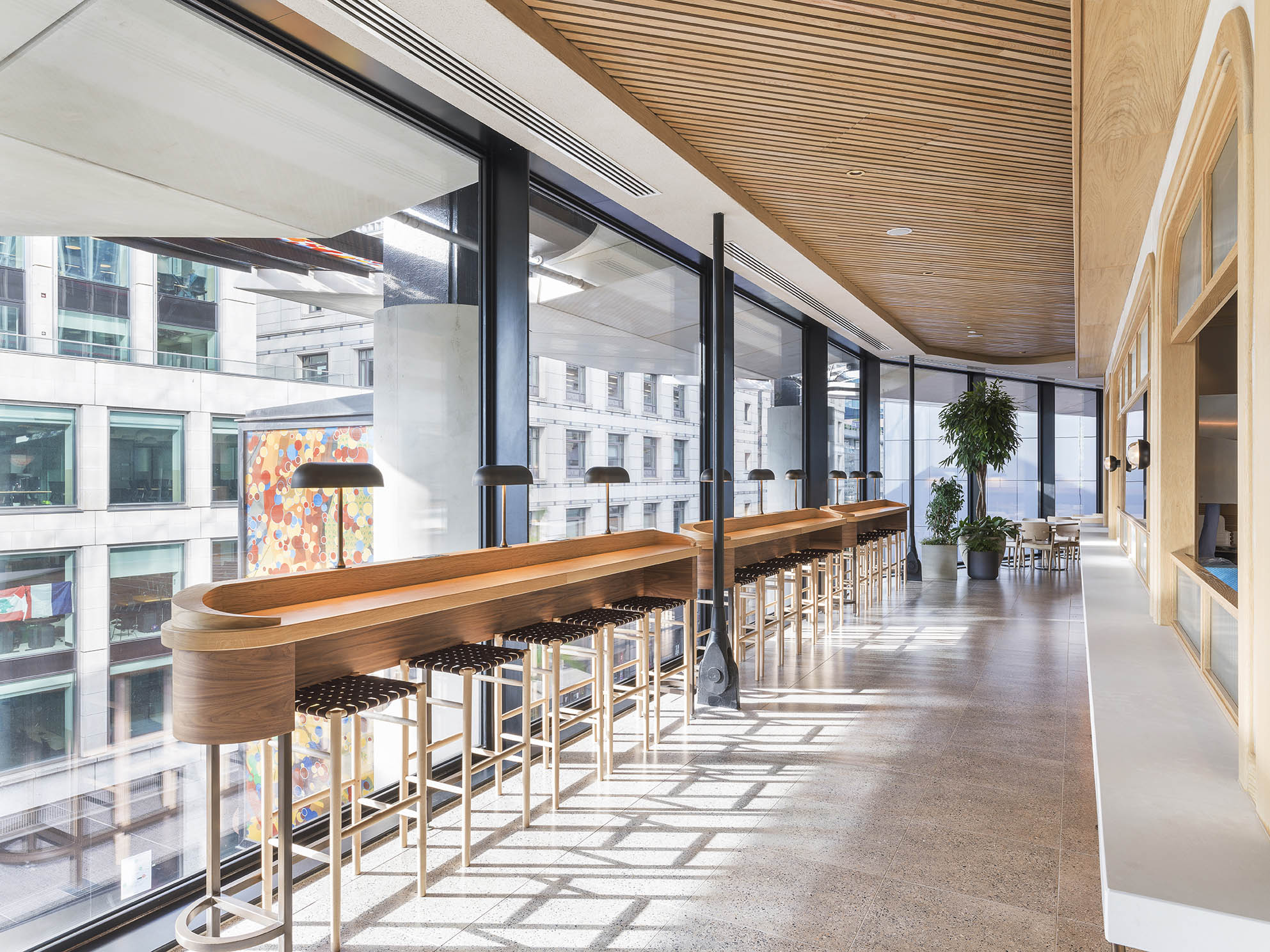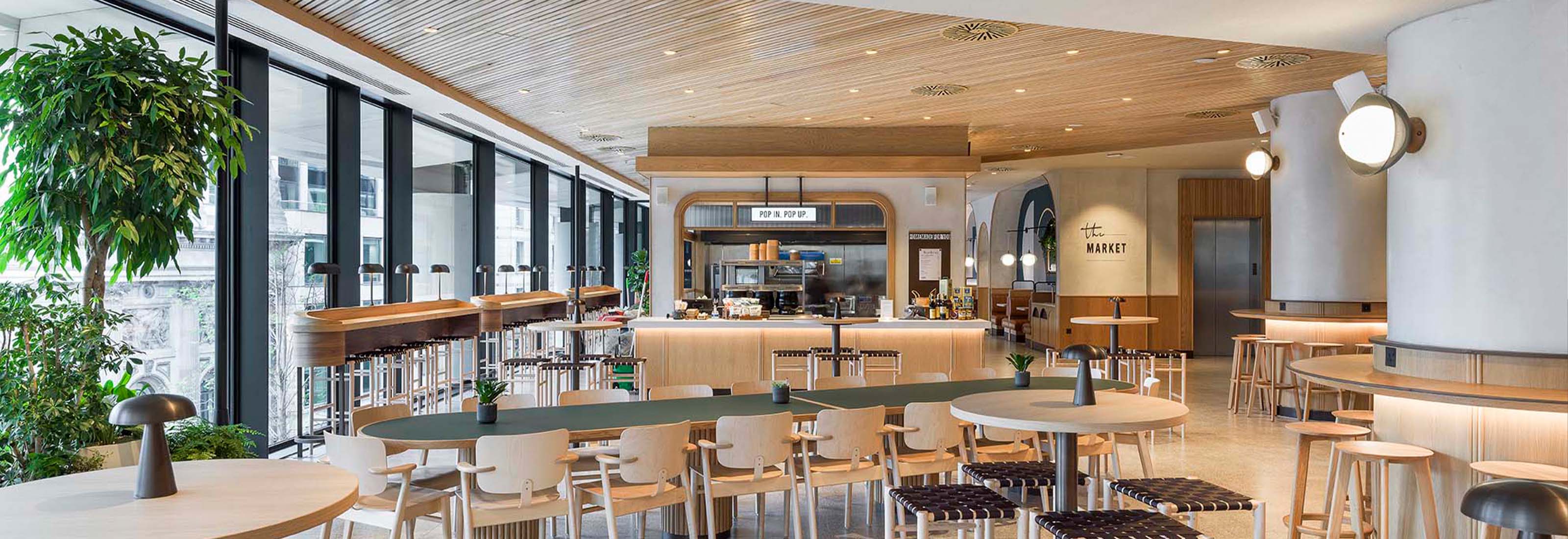 DesignLSM was commissioned to implement the interior design for The Market's food and dining areas on Level 2 at 22 Bishopsgate, collaborating with Amy Morris from The Morris Project NYC.