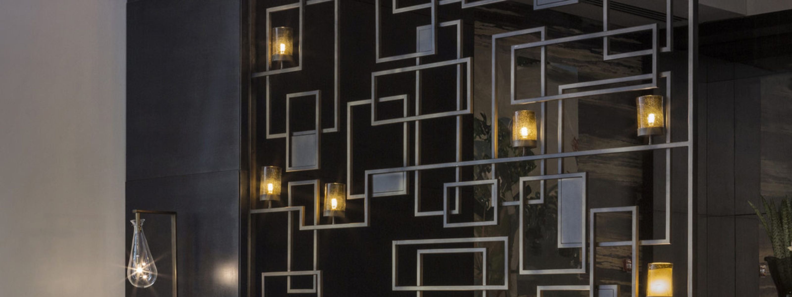 We’re renowned for our metalwork capabilities, and offer bespoke metalwork services beyond lighting. Our team of expert design engineers and artisans craft solutions for some of the world’s finest hotels, restaurants, bars, and cruise ships. From intricate design detailing to precision laser-cut patterns, we blend exquisite aesthetics with structurally sound, robust metal solutions. Some examples of what we can offer: