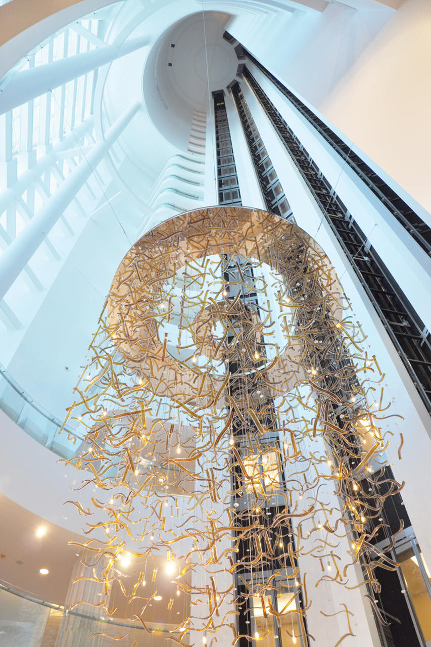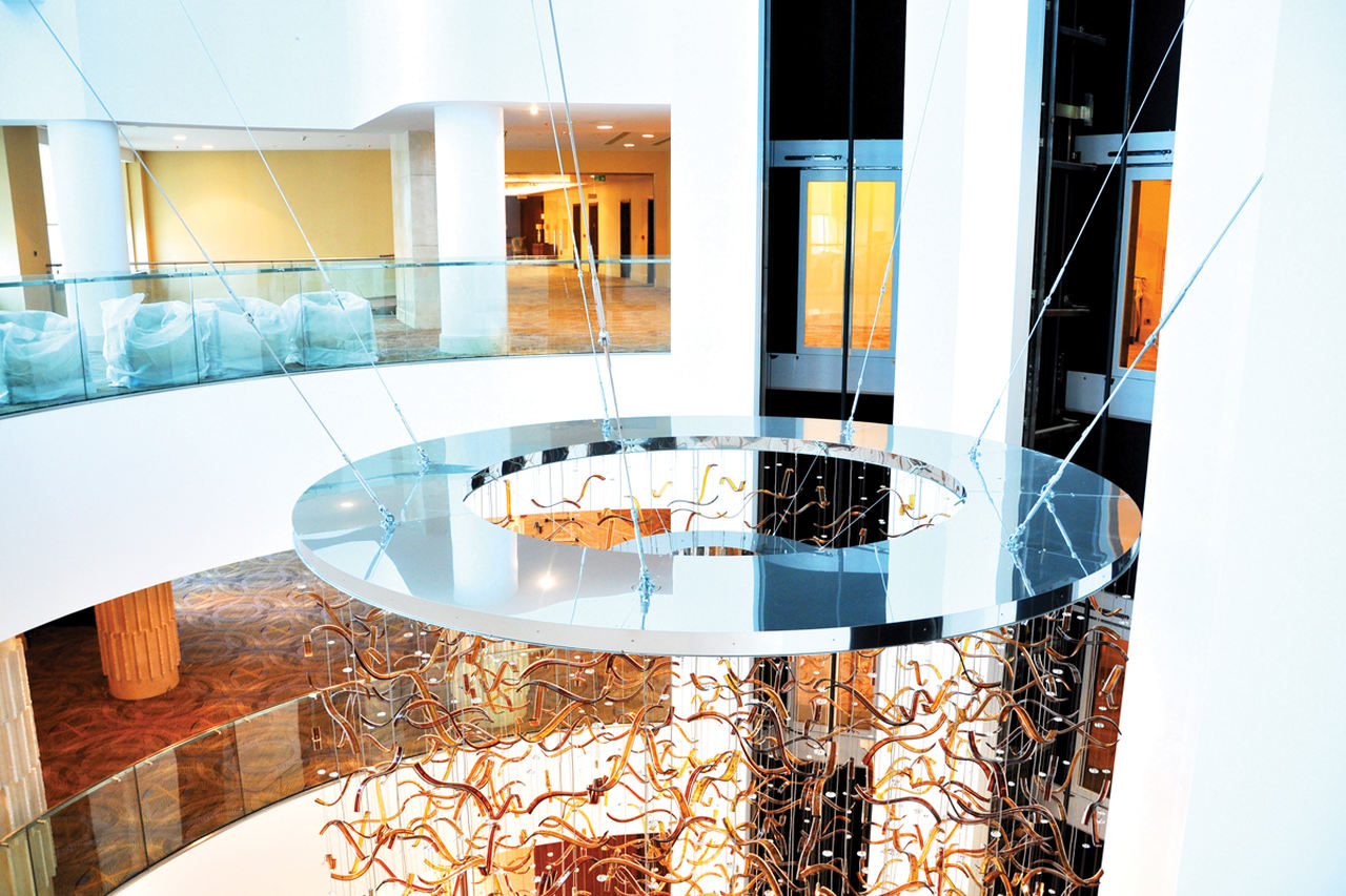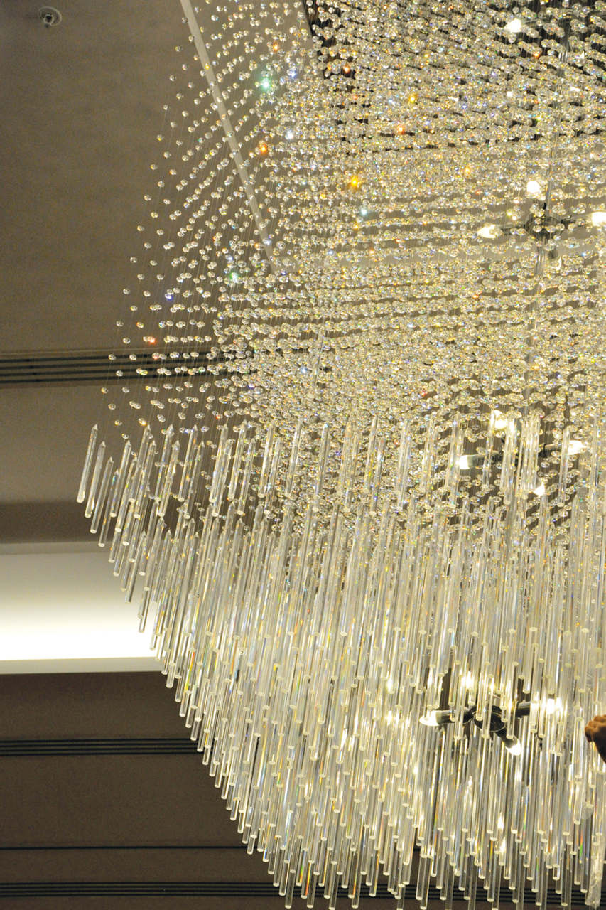 Northern Lights also supplied crystal and fused glass chandeliers for the ballrooms and the presidential suites. The ornate drops suspended in a complex and rigid pattern, creating structure and sparkle within the opulent interior.