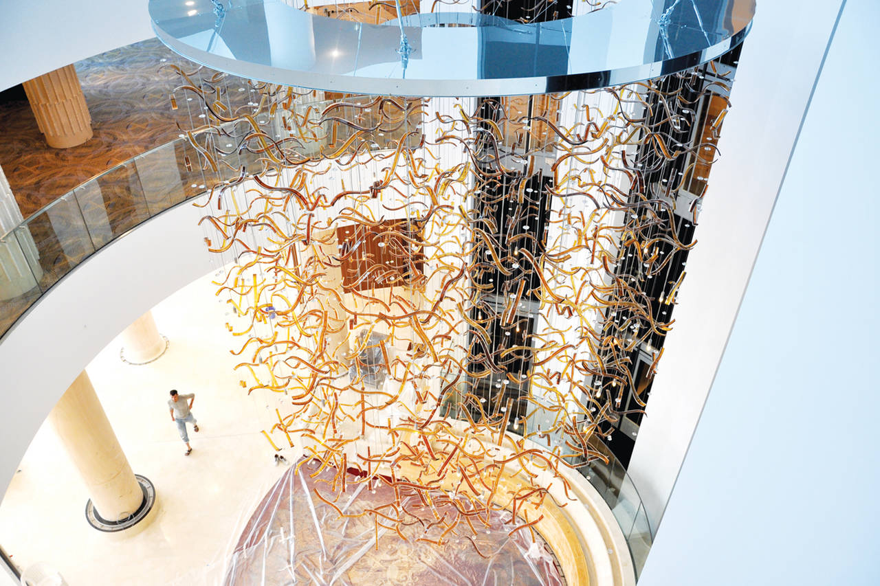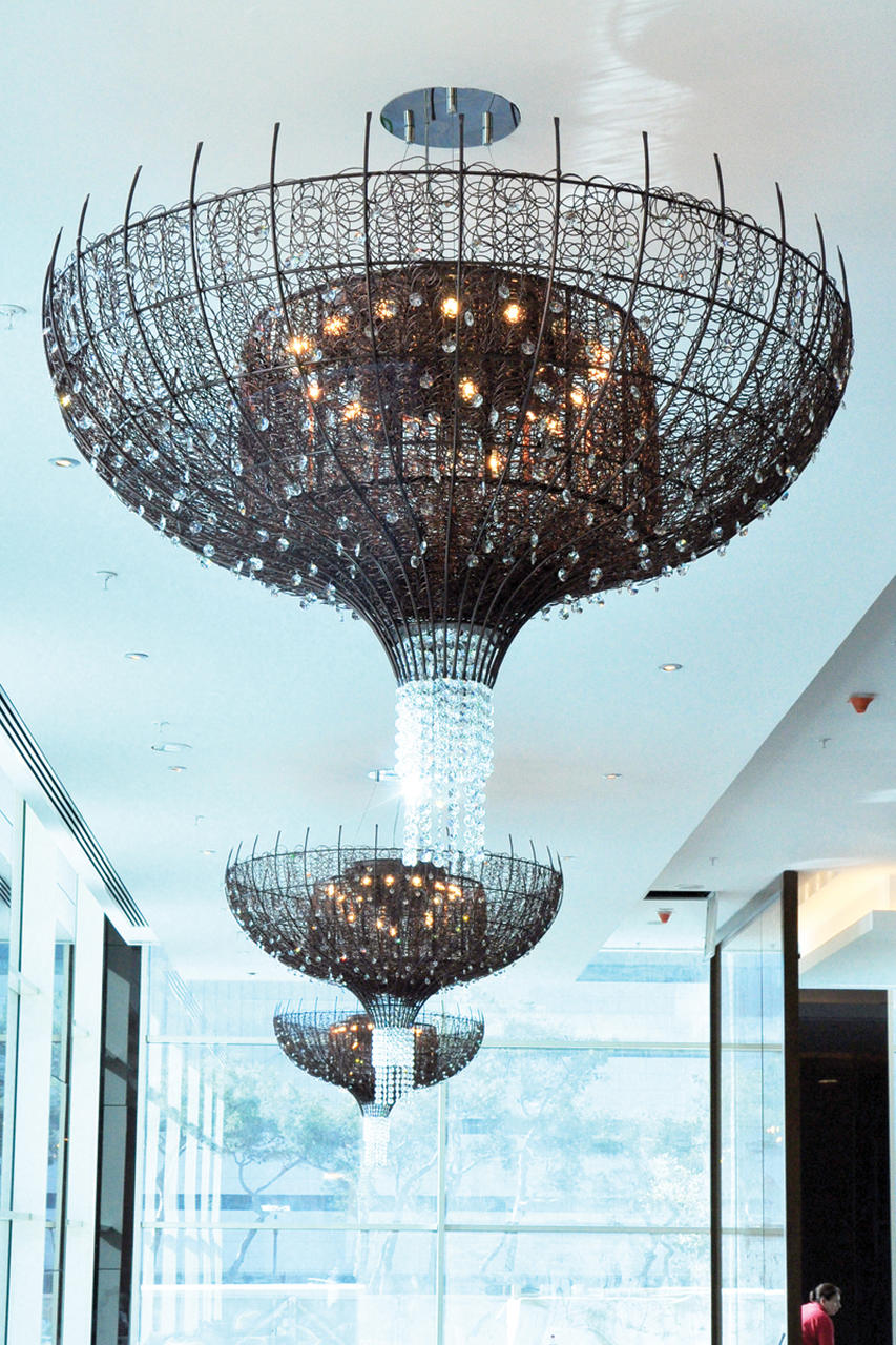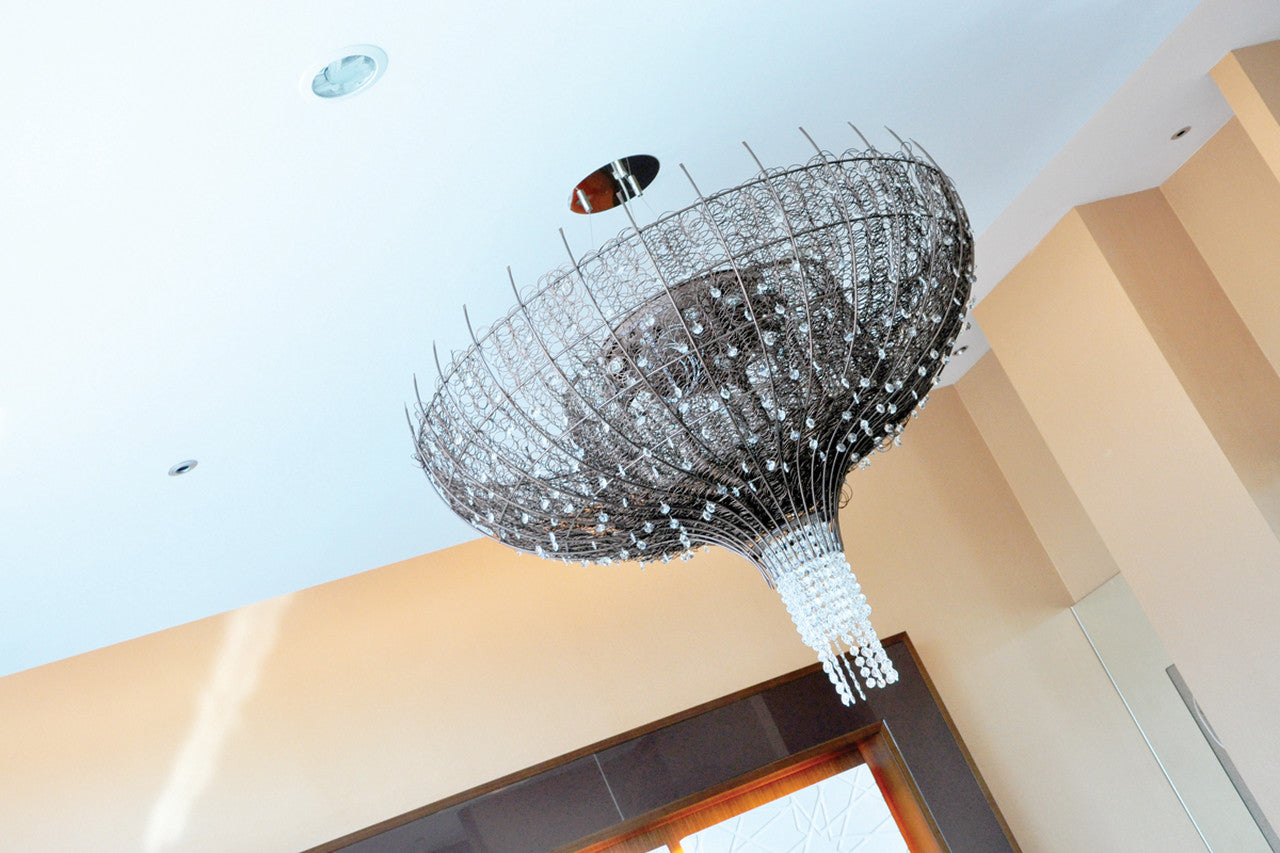Northern Lights also supplied crystal and fused glass chandeliers for the ballrooms and the presidential suites. The ornate drops suspended in a complex and rigid pattern, creating structure and sparkle within the opulent interior.