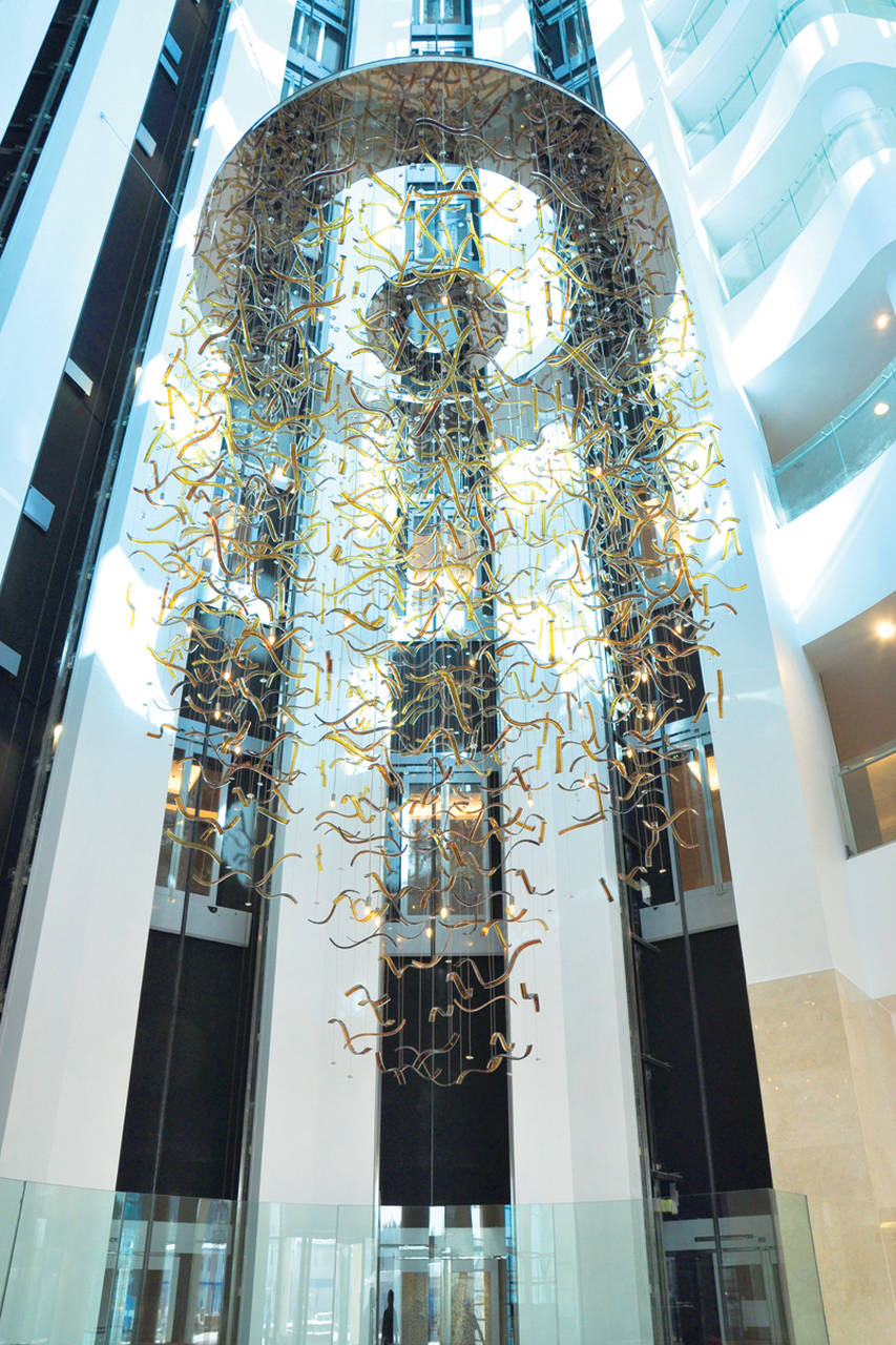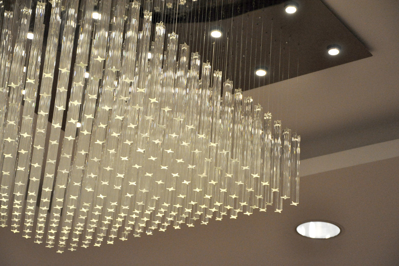 Design and installation jobs do not come much more significant than The Hilton Baku. Working closely with ara Design, Northern Lights was responsible for the bespoke lighting in all the public areas and the development and installation of the entire front-of-house lighting scheme. One of the most stunning features is the 25 ft high curled glass drops installation for the atrium. Together with the suspension, the chandelier spans several floors.