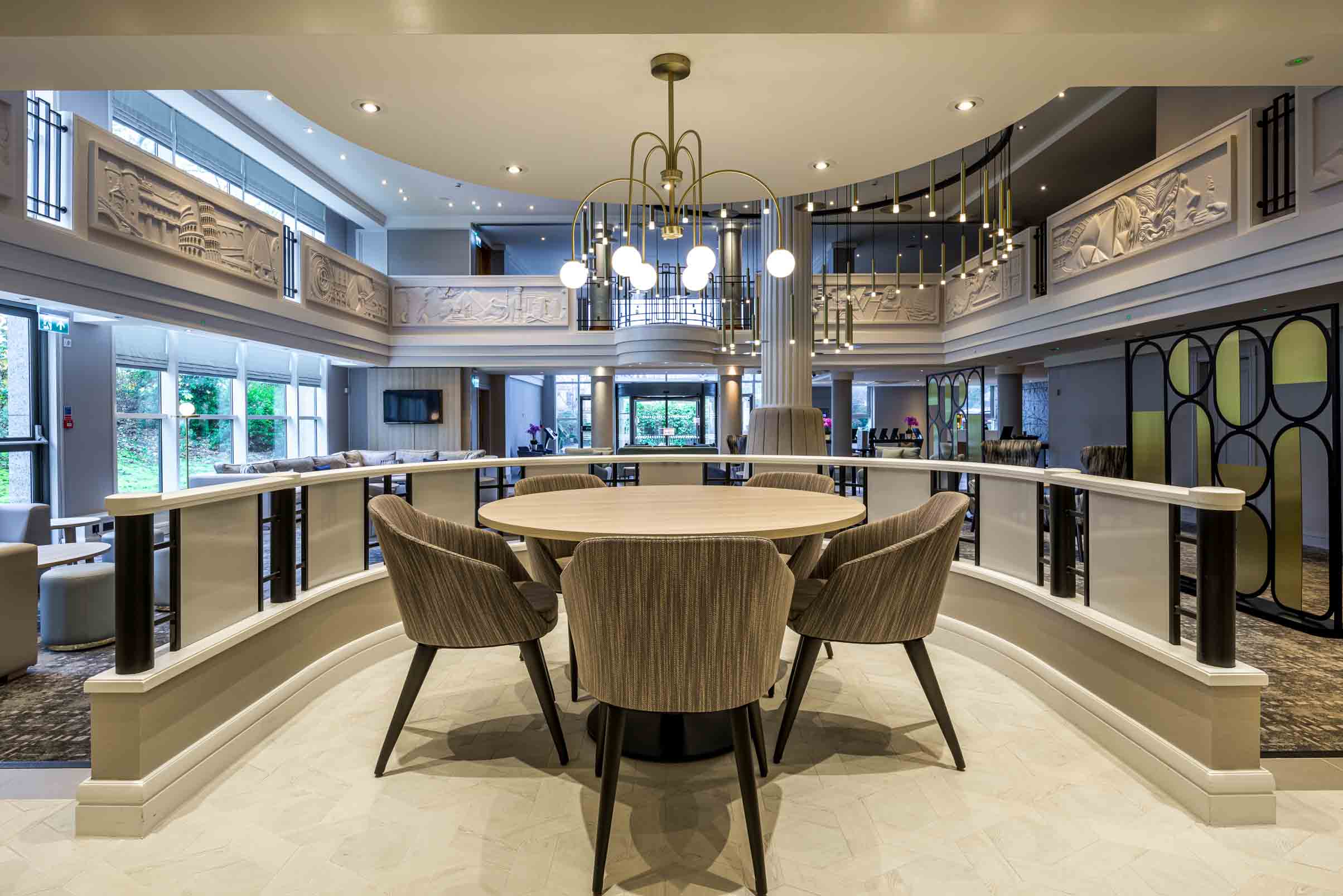 Thoughtfully designed by ICA, the Glasgow-based powerhouse, the first thing you notice when you walk through the hotel entrance is the double floor atrium with an immensely theatrical yet deceptively delicate, double-tiered chandelier.