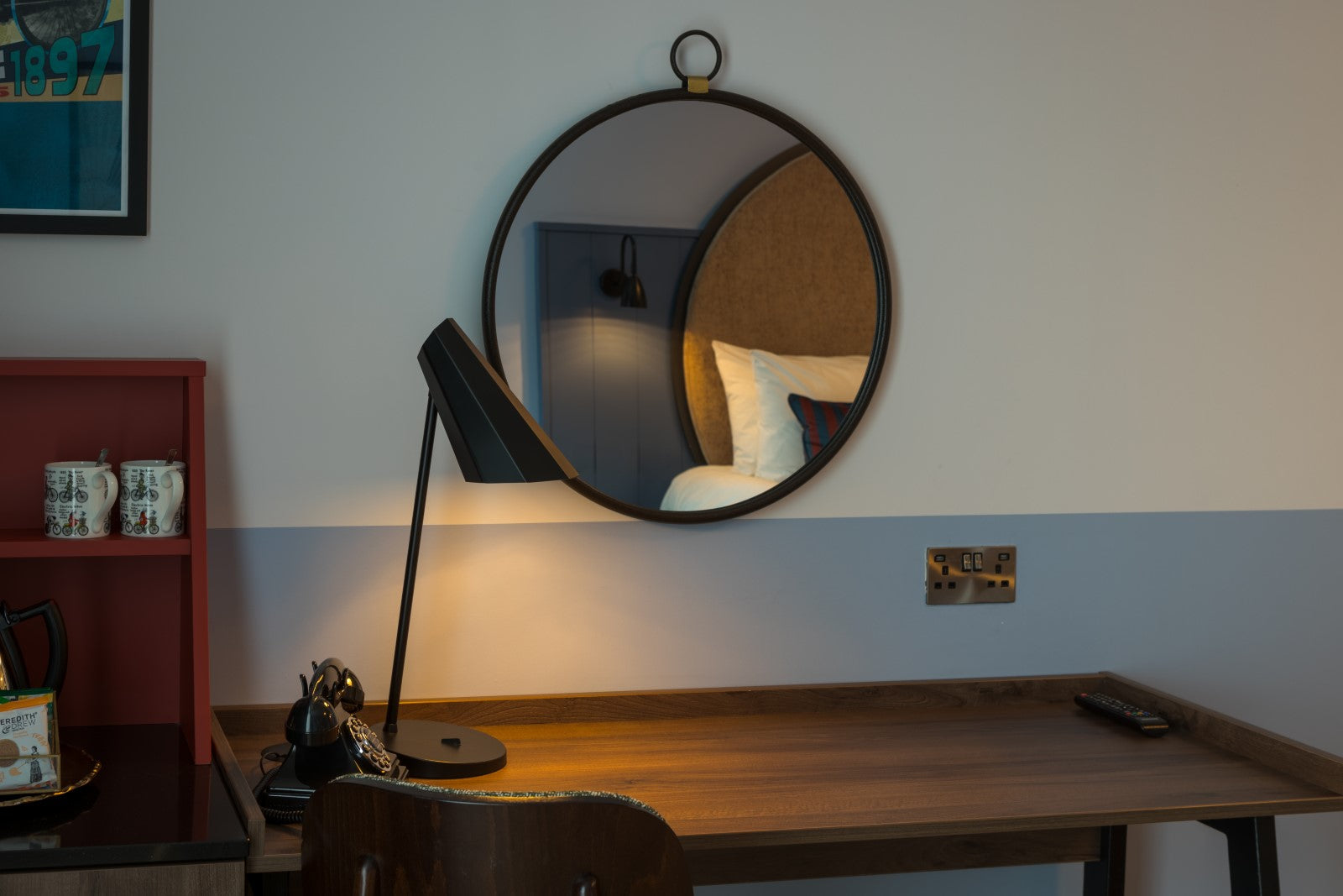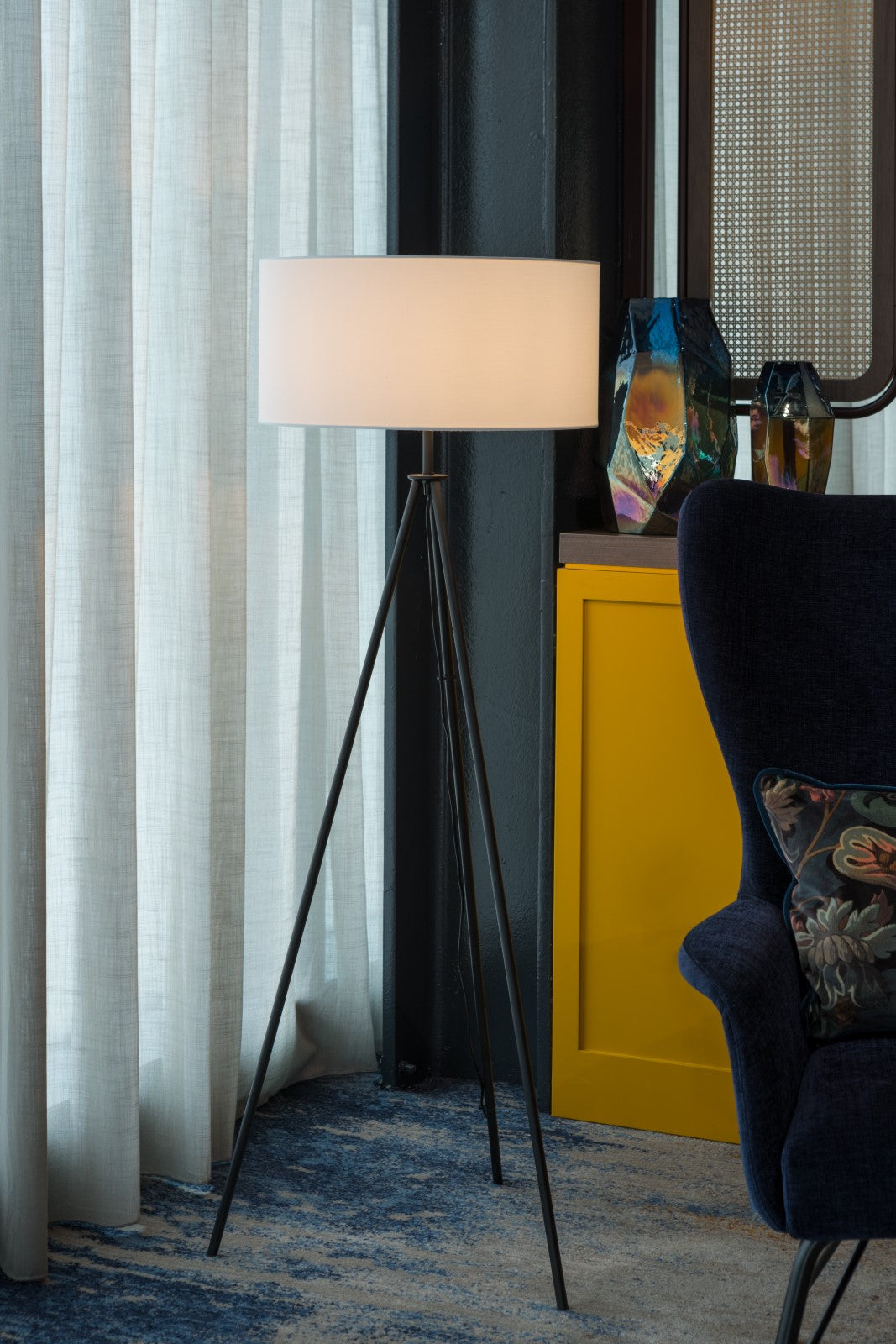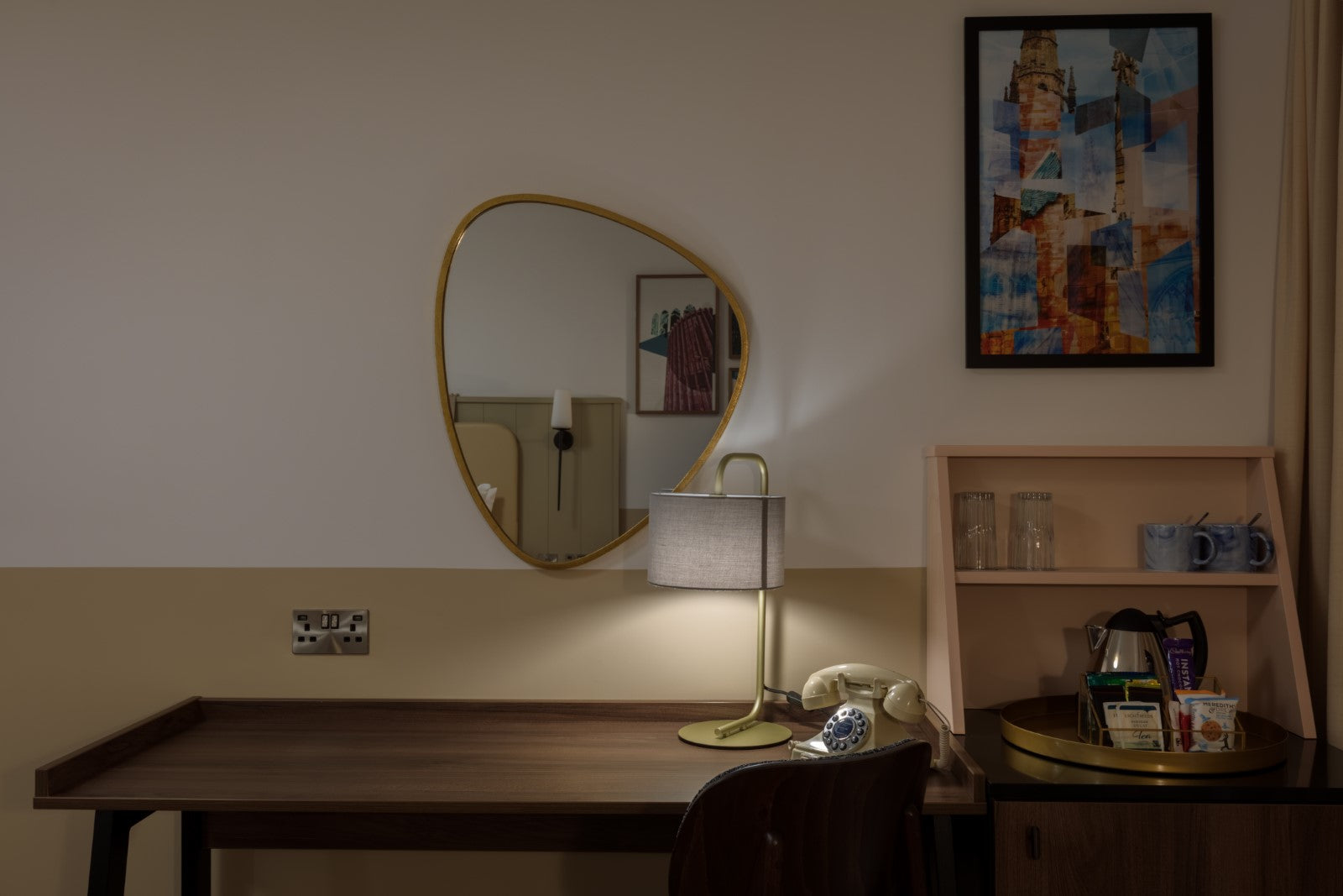 Working alongside hotel management operators Castlebridge Hospitality, and designers Chapman Taylor and Sweeny Ellis, we were tasked with providing lighting solutions to elevate the contemporary and luxurious interiors. Matte black metal desk lights in the bedrooms offer modern, architectural-style task lighting, with adjustable head and gold inner shade. These are perfectly complemented by our bespoke metal wall lights in powdercoat black for an industrial feel. In the other bedrooms, bedside lamps with beautiful silhouettes are finished in champagne gold and soft grey fabric shades for gentle illumination.