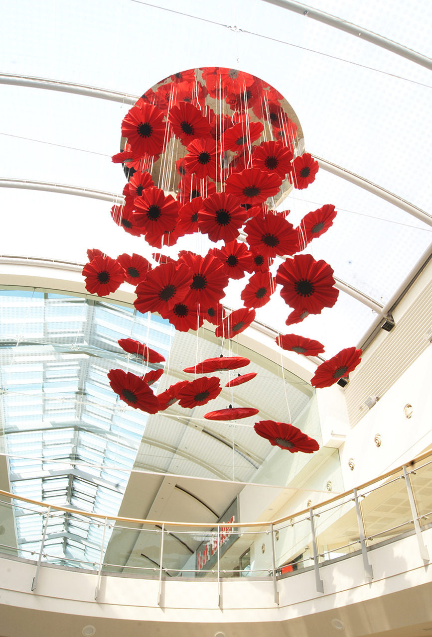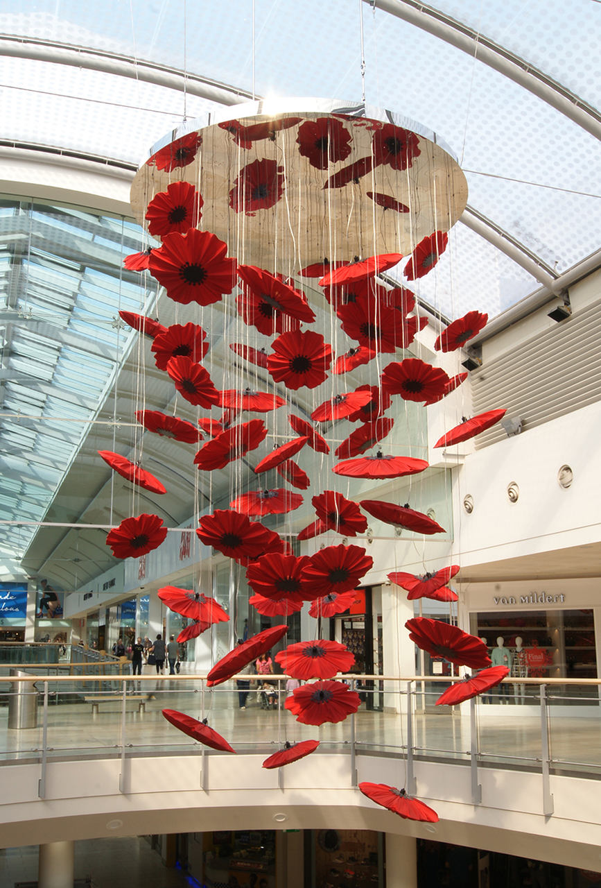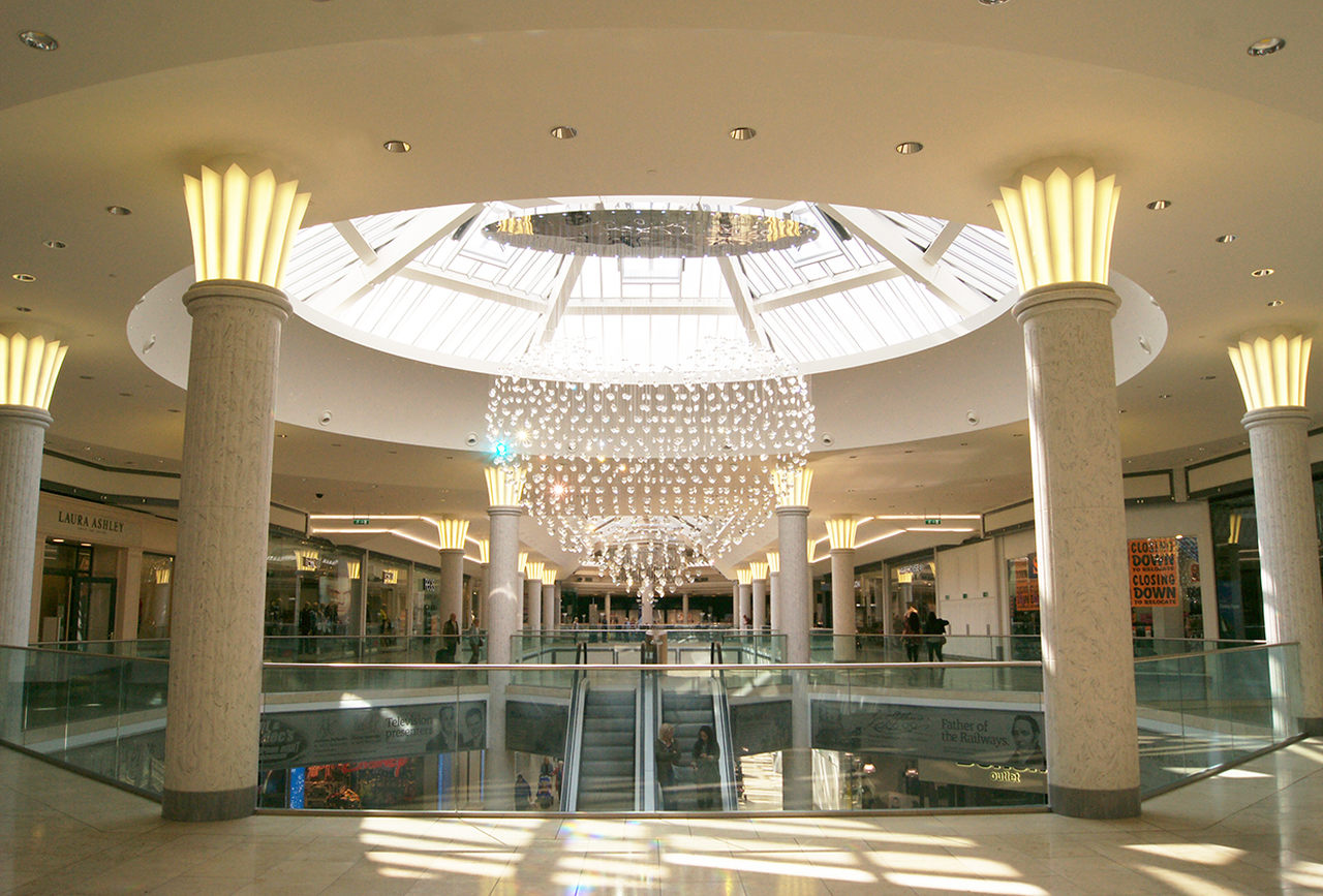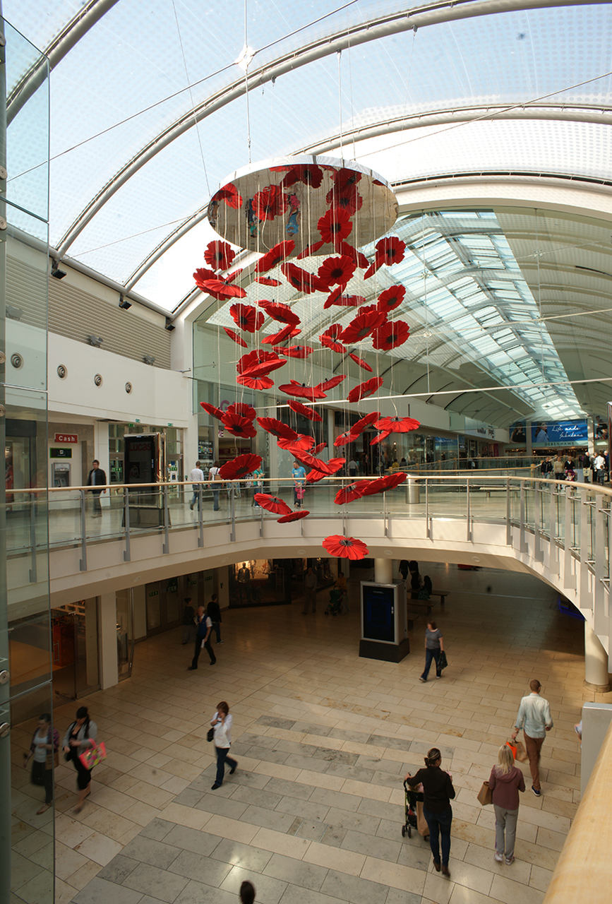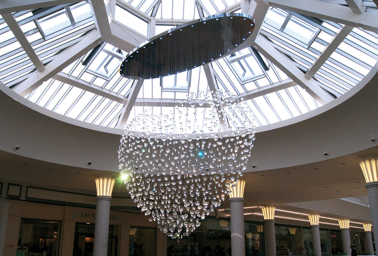 A the heart of Metrocentre lies a specially commissioned chandelier to commemorate the centenary of the outbreak of WW1. Northern Lights were tasked to translate the vision for the vast spaces within the shopping mall into reality with a series of bespoke sculptural lighting installations.