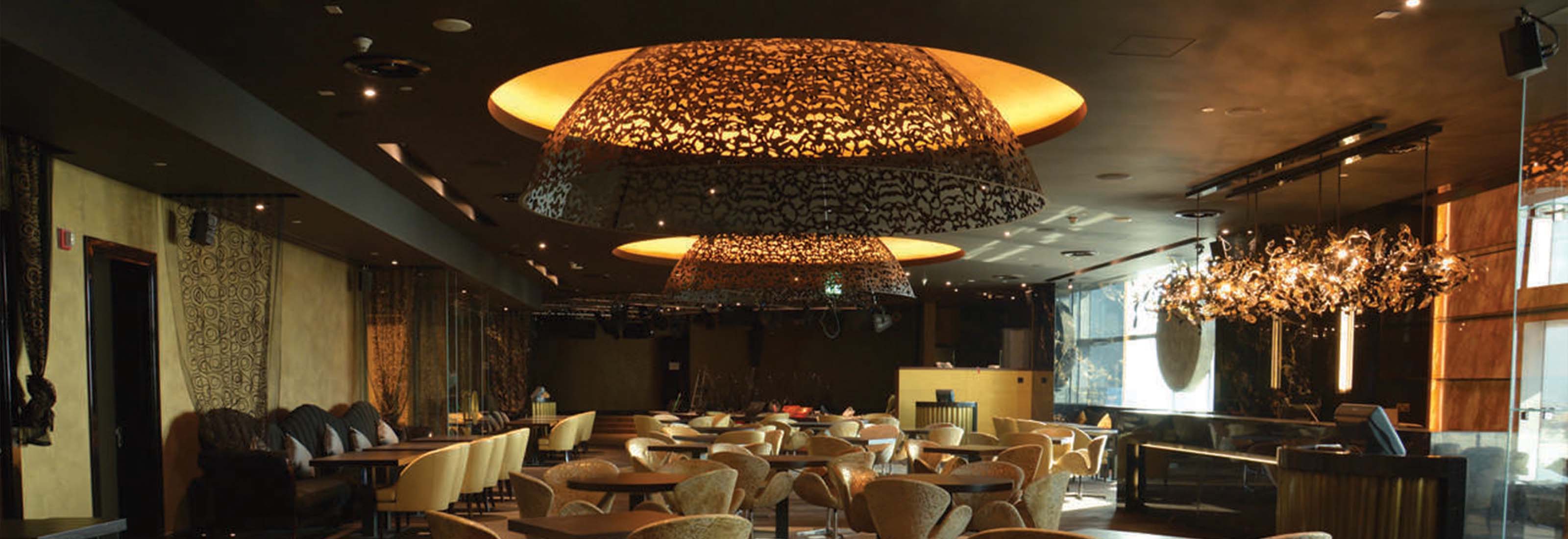 Working closely with WA International in developing their concept and beautiful fretwork patterns required to create the domes, Northern Lights were able to resolve this engineering task in their UK bespoke lighting factory.