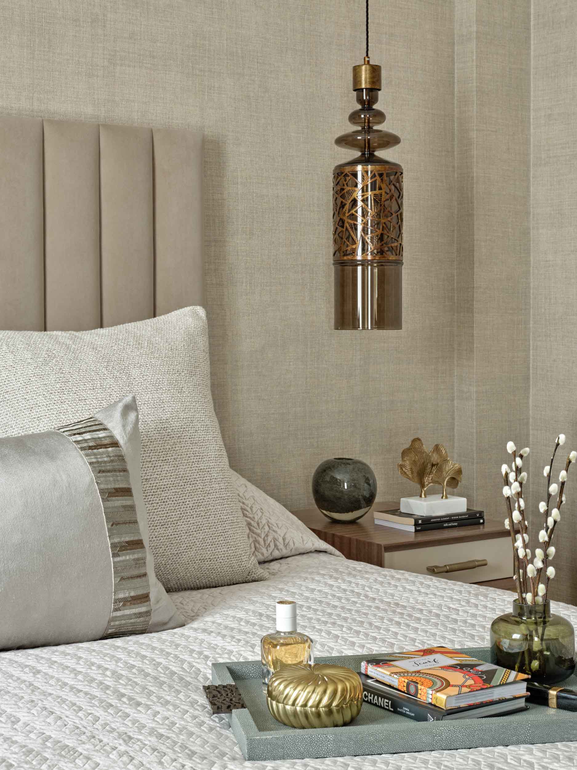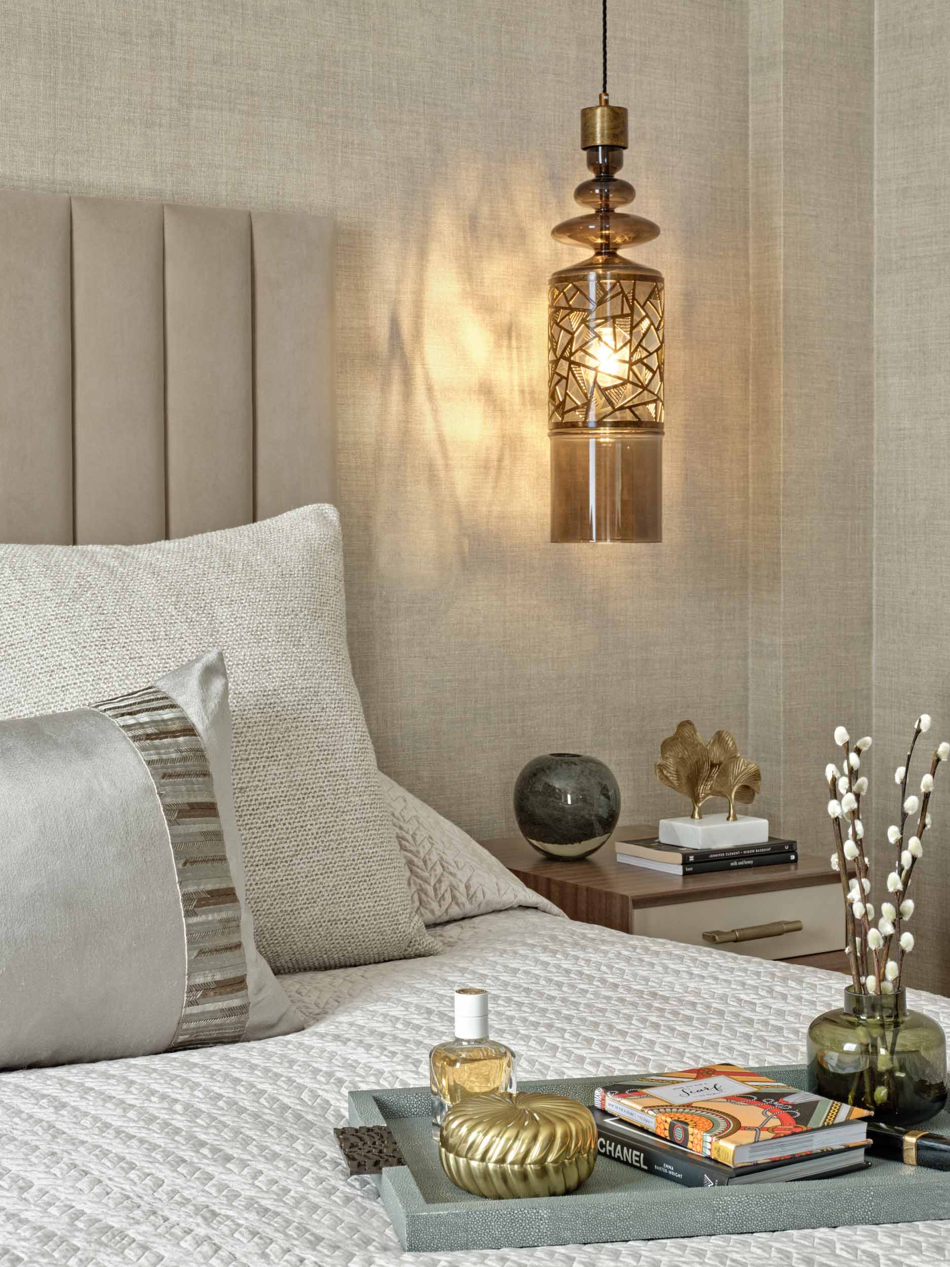 Northern Lights was thrilled to be a part of this beautifully considered interior scheme. Our luxurious and decorative Casina pendants play a huge role in adding handcrafted personality to the bedsides by providing a warm, diffused opulence refracting unique patterns in the surrounding space.