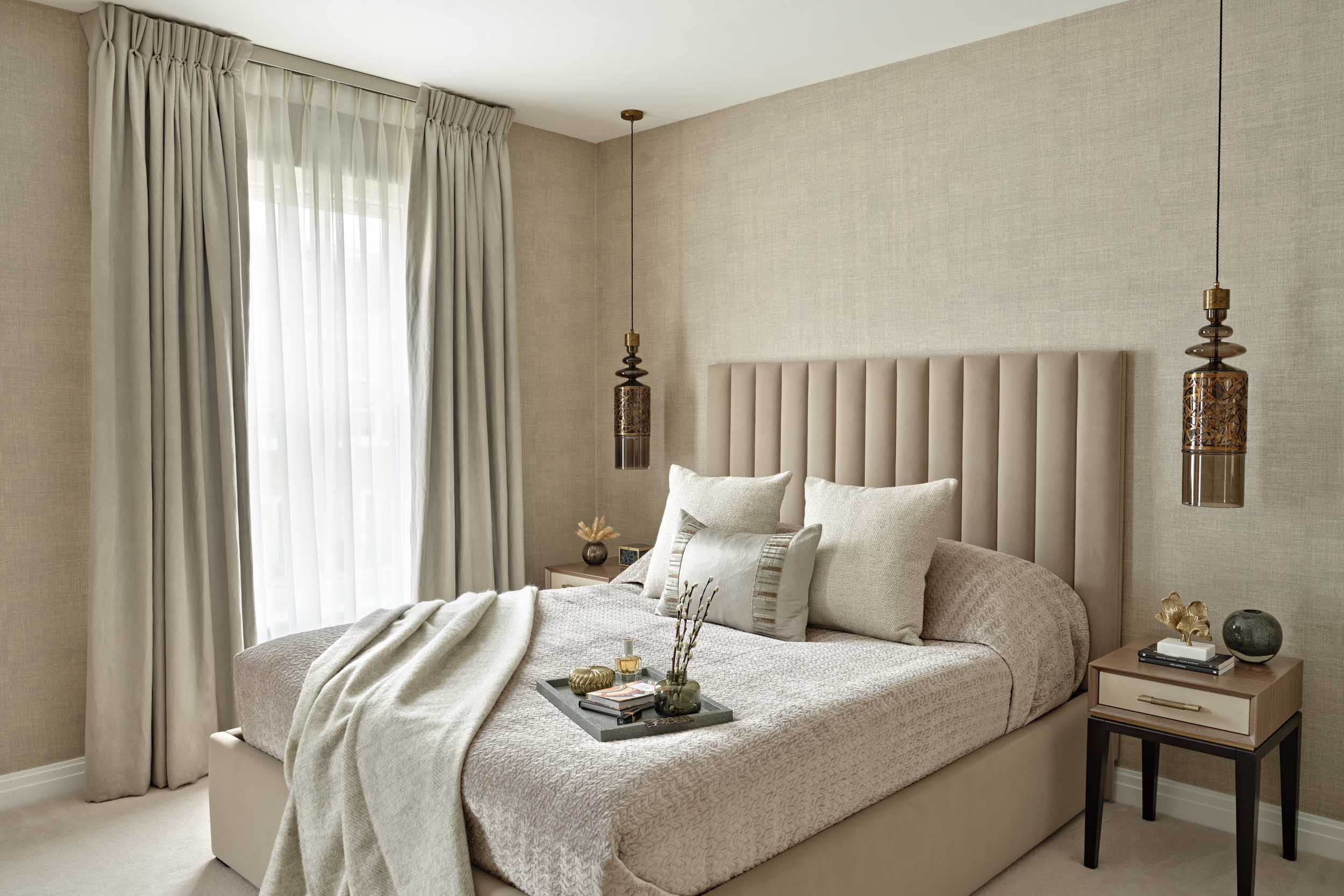 The room design success relies on aesthetic unity to provide a sense of calm; a quiet haven to relax and retreat.