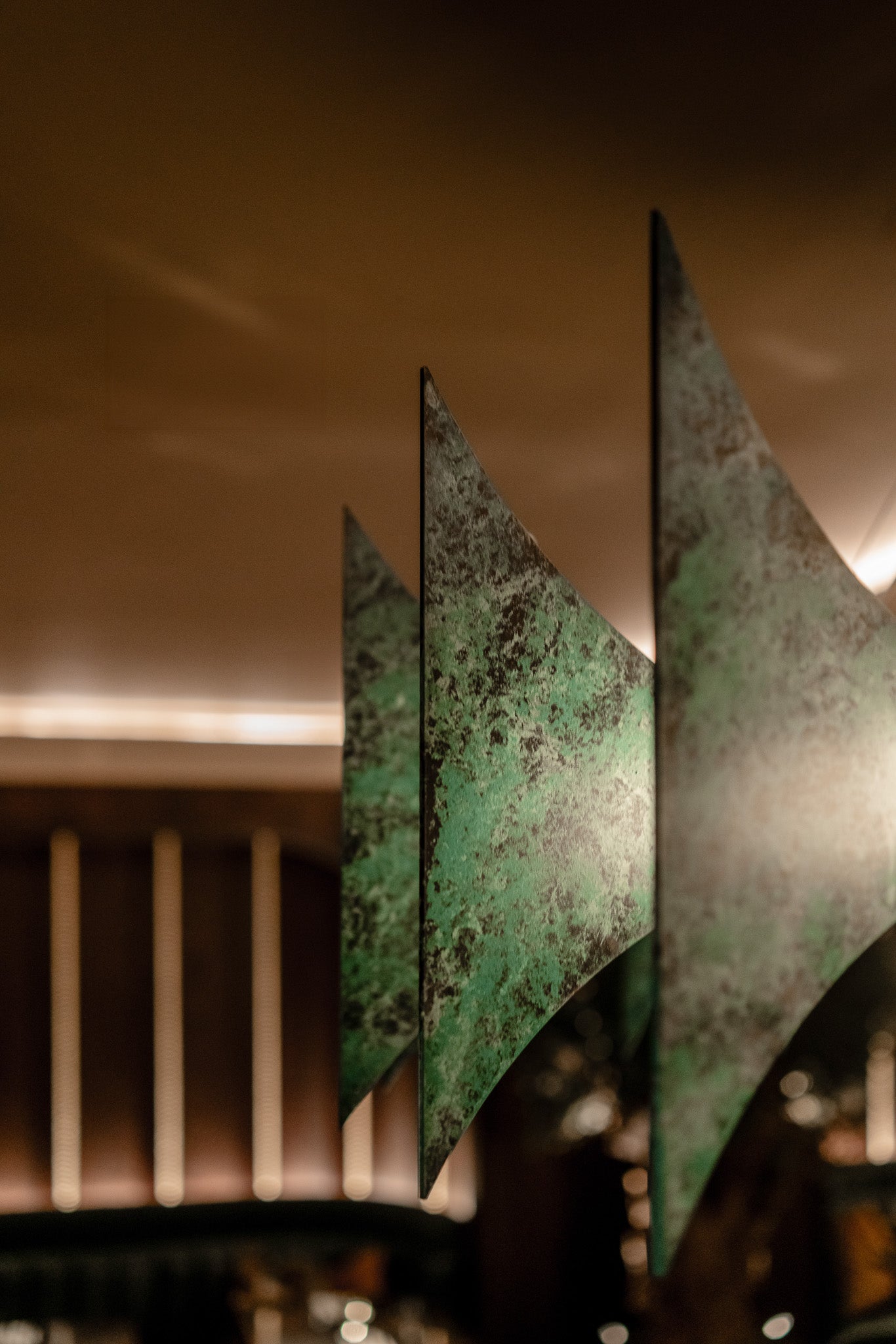 Partnering on yet another great project with the brilliant minds behind the award-winning design practice, we crafted bespoke pendants and table lamps to shine an ambient light on the narrative around Birmingham’s industrial heritage. A striking industrial pendant with beautiful Verdigris-finish fins, LED strips and opal diffuser suspends above diners below, emitting a soft inviting glow encouraging diners to linger for longer – a crucial factor in designing for luxury dining.