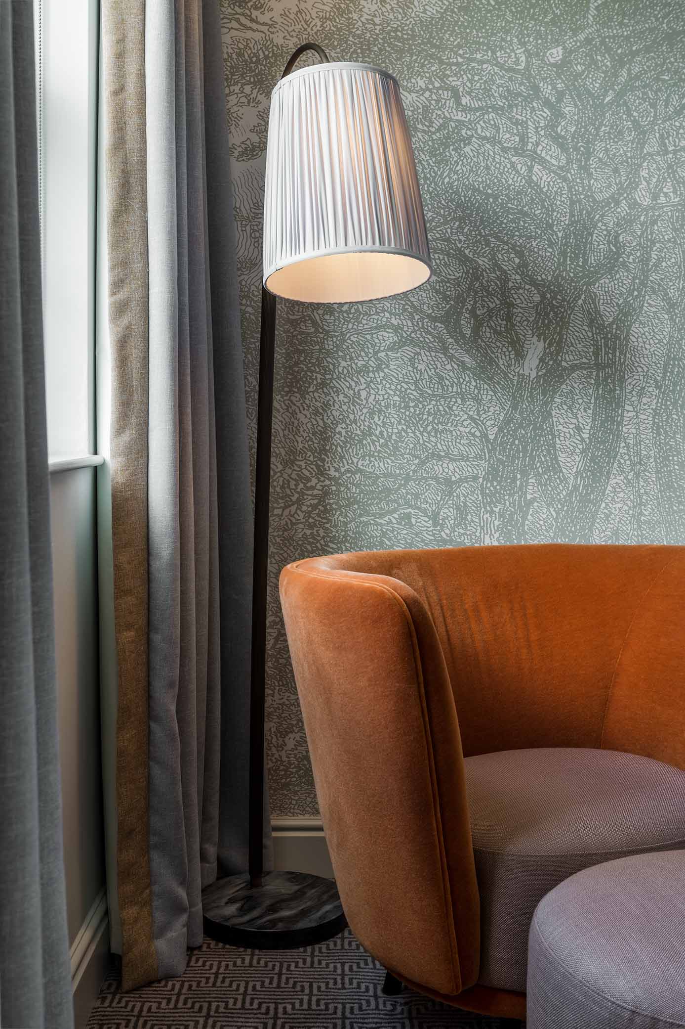 Our luxurious brass & marble floor lamp completes the lighting in the bedrooms. This considered design benefits from light and medium brass finishes that accentuate detail and