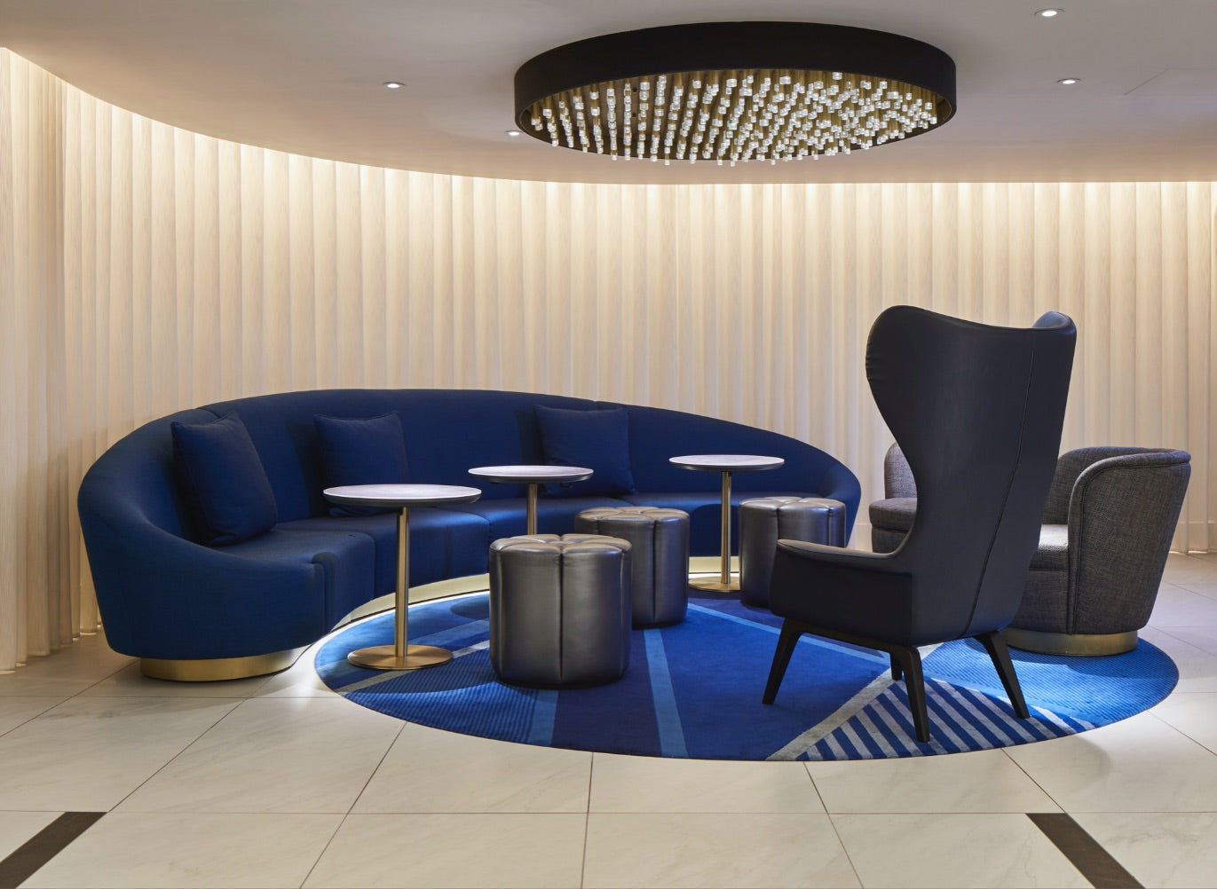 Subtle Art Deco influences are integrated into a contemporary design detail and sophisticated colour palette, with bespoke carpets, light fittings and joinery all carefully showcased within a serene, light and uplifting environment, creating a relaxed and tranquil atmosphere. The new public spaces have been designed for guests to enjoy as flexible lifestyle areas, where they can relax or work wherever they choose.