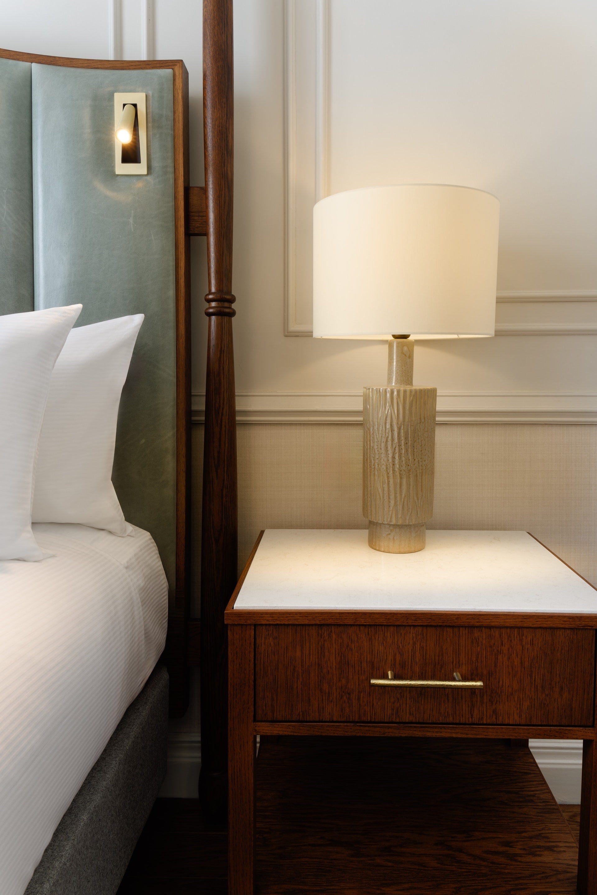 In the newly styled guest rooms, over 100 of our Halsa table lamps were selected to complement the tactile and comforting material palette.