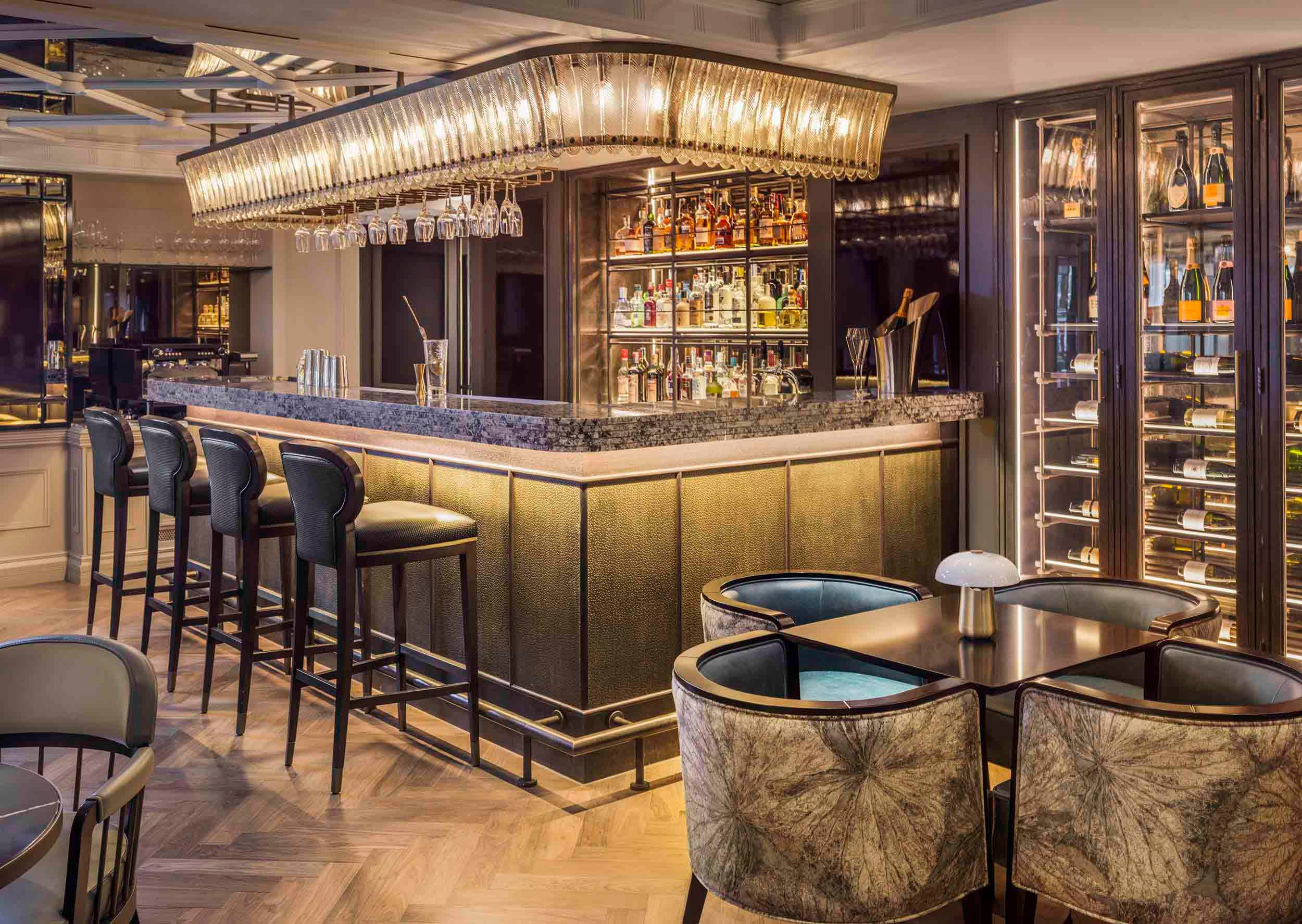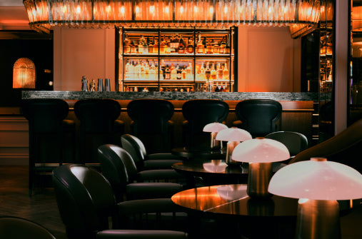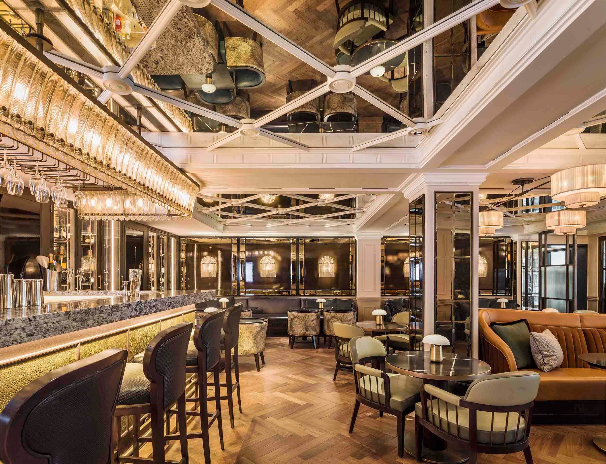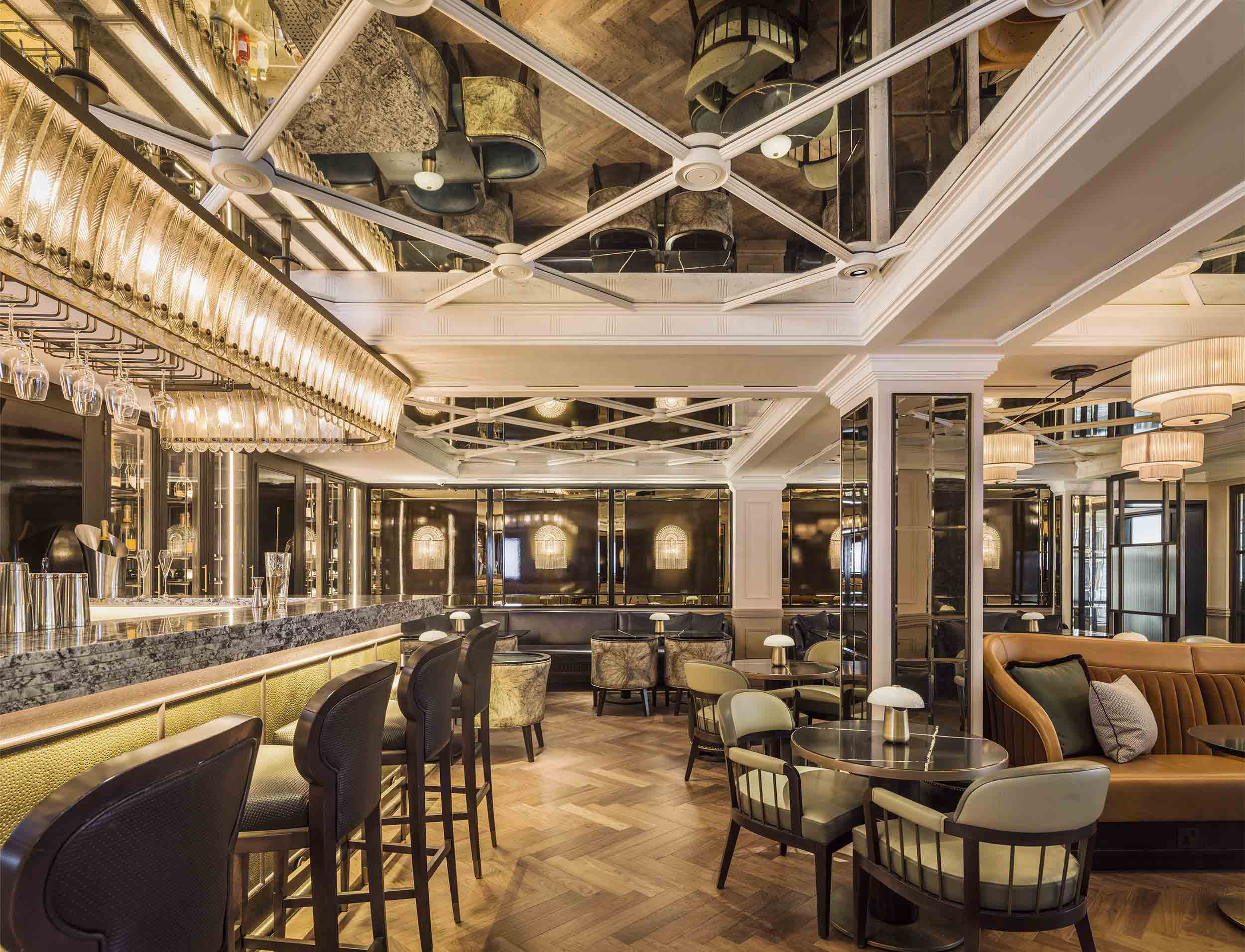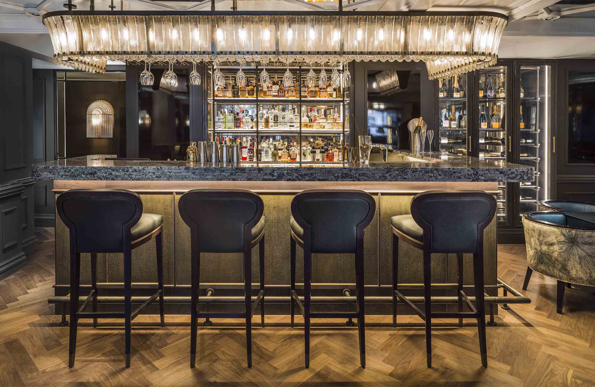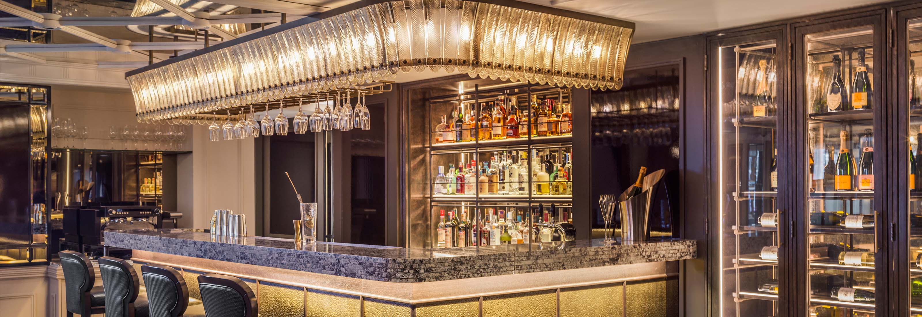 The Dandy Bar has all of the ingredients to become an iconic destination bar. With a cocktail menu that amplifies the hotel's brand, the area full of guests and locals will very much be an extension of the design itself. Centre stage is the overhead fixture in the revered Dandy Bar. Comprised of etched glass, the skilfully handcrafted bespoke lighting design takes inspiration from the form of feathers, akin to flapper outfits made popular in the 1920s. The aesthetic provided by the eye-catching design creates the desired effects that The Mayfair Townhouse required from the brief resulting in a bar space and area where it is a joy to imbibe.