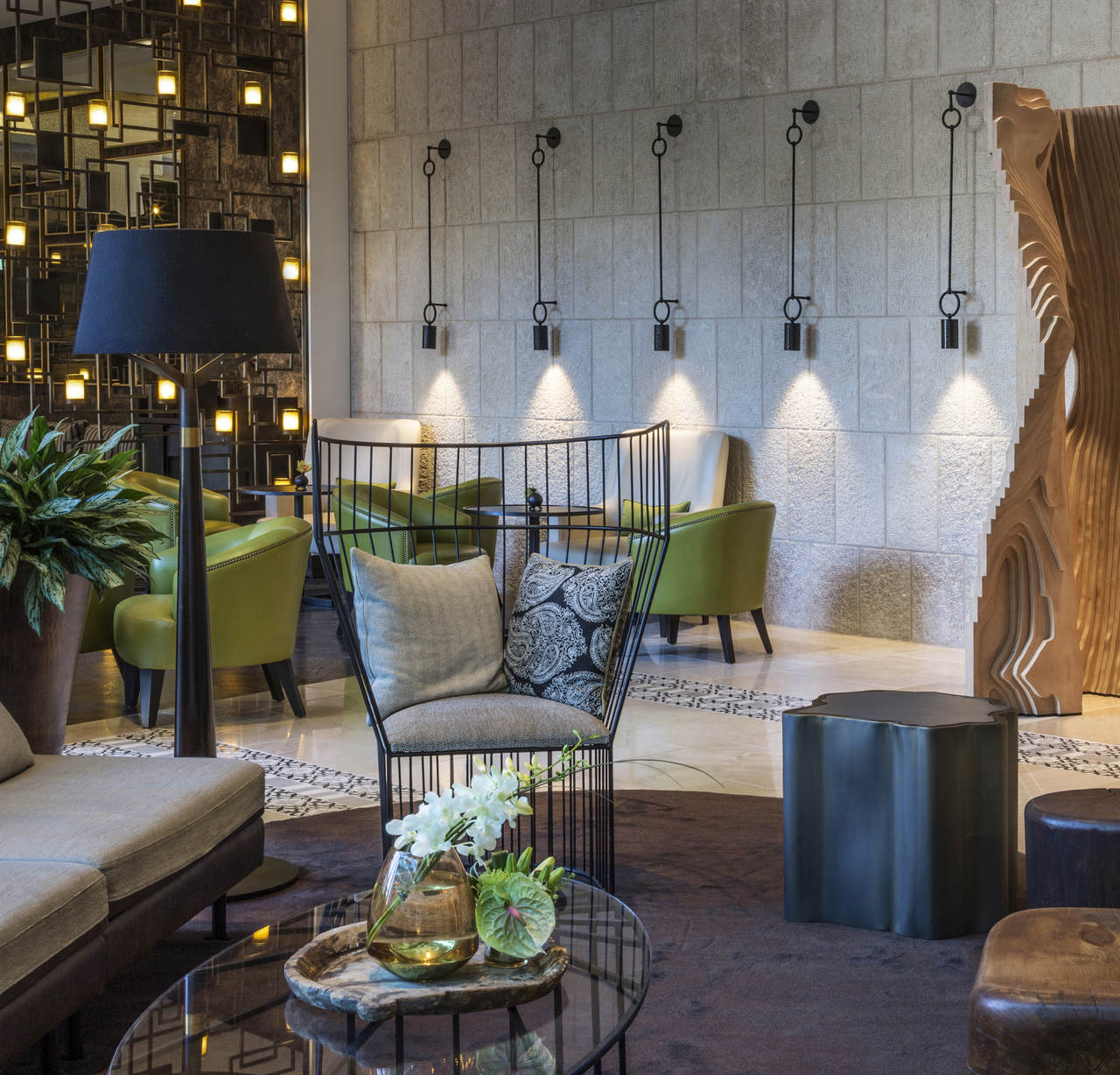 Northern lights were asked to develop and manufacture all the bespoke lighting for the public areas and the presidential suite for the newly opened Orient. HBA’s design brief was clear from the start; the bespoke lighting needed to be high quality, contemporary and complementing of the natural Jerusalem stone that is so prominent in the area.