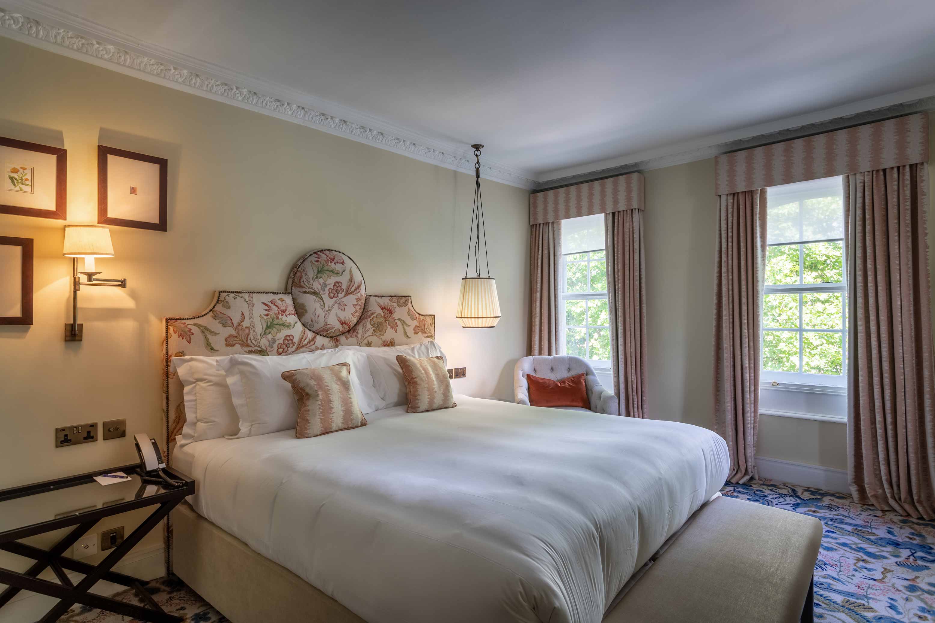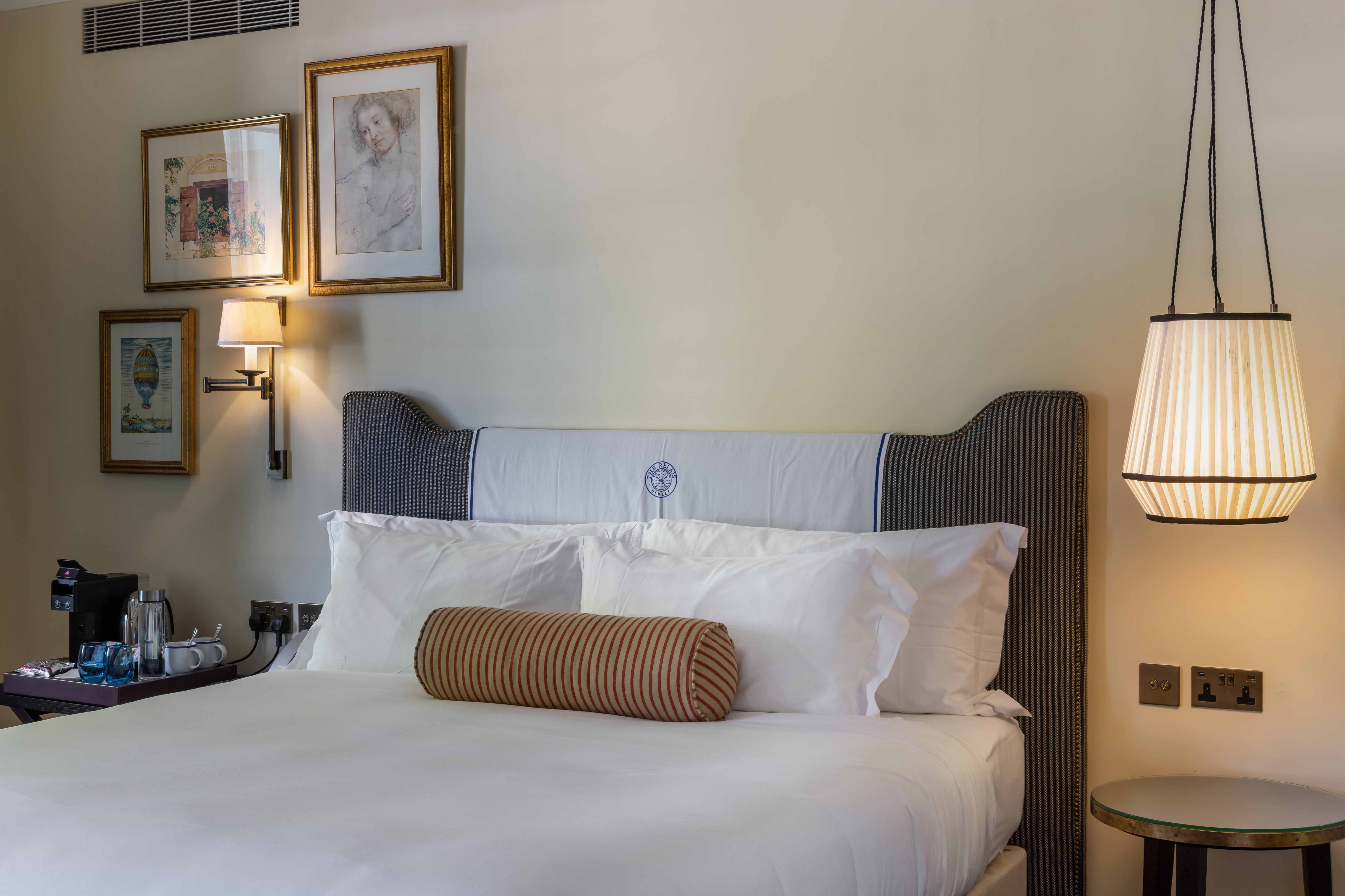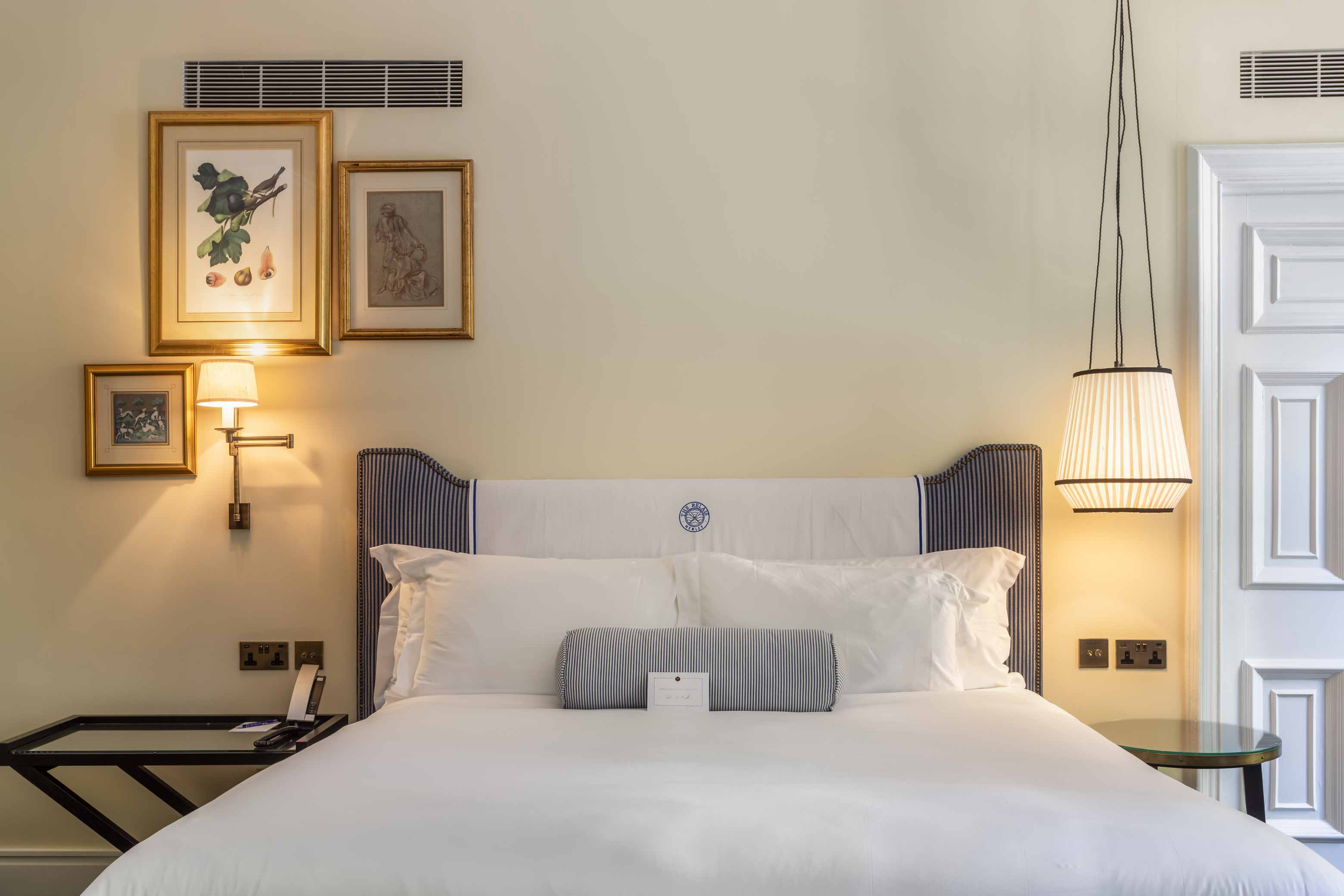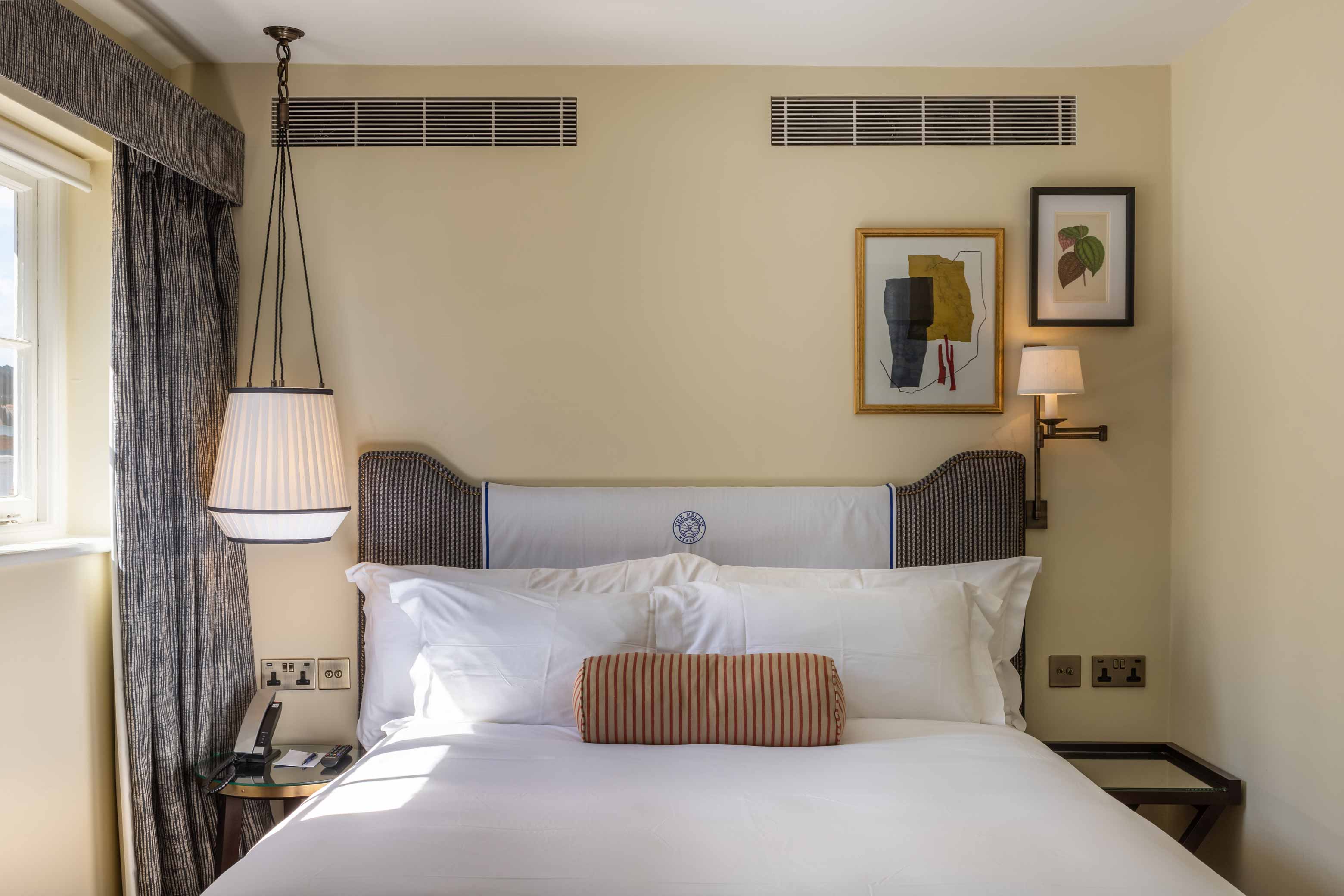 Each of the forty bedrooms has been uniquely designed due to the shape of the building. These rooms have been branded Courtyard, Heritage, Royal Regatta and Riverside. There are different levels of luxury available to guests, with the most premium room being the Riverside Studio. Each room contains two bespoke decorative lighting fixtures on either side of the bed.