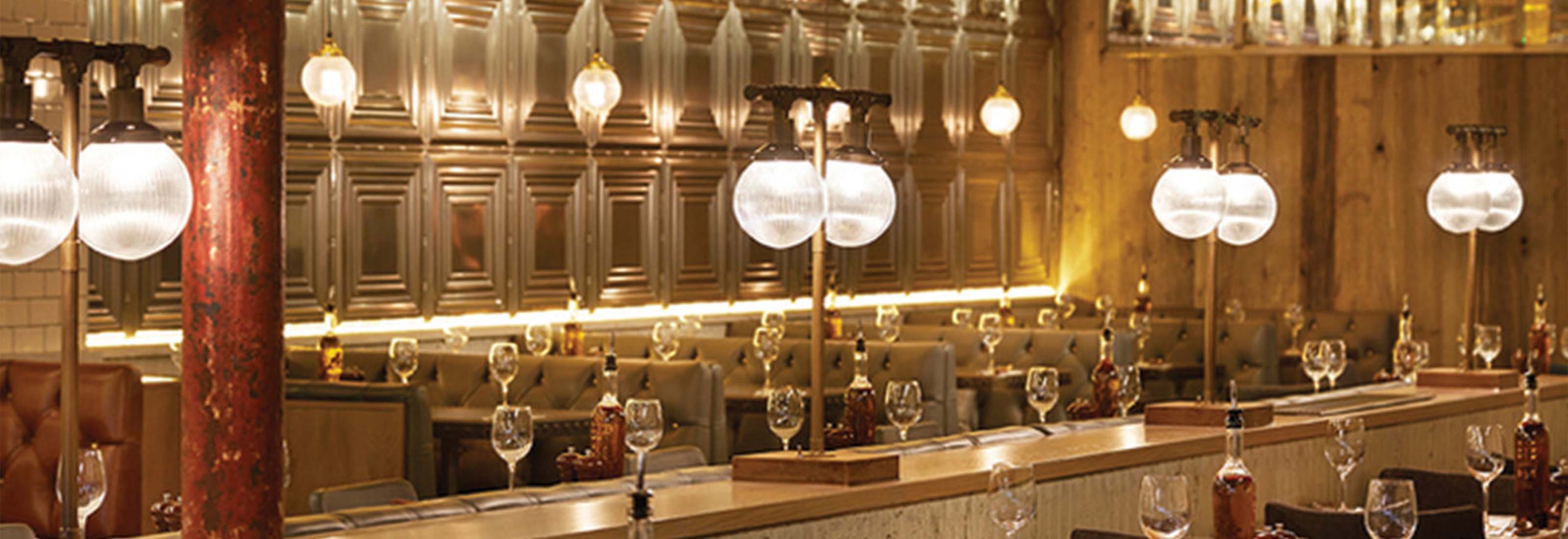 Working with The Lighting House, we also supplied the bespoke booth lighting that had an art deco feel. Design Command cleverly broke up the different sections of the space with a different restaurant and bar lighting theme for each subsection.