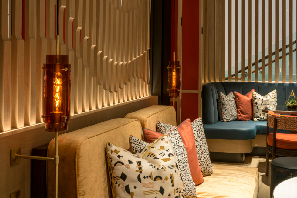 Northern Lights were once more delighted to work with Goddard Littlefair on bringing their vision to life through bespoke lighting. The restaurant interior's exuberant design required bespoke lighting that would marry with the wonderfully rich colour palette displayed throughout. The geometric influences, musical heritage of Manchester, and metal elements in the restaurant were all factors to consider during the design process.